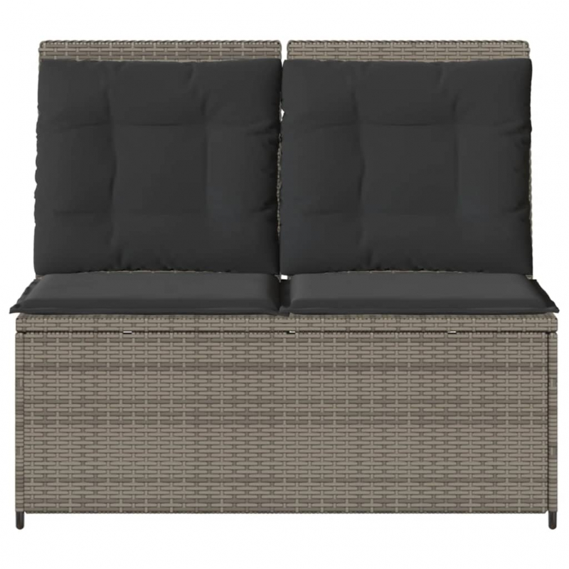 Gartenbank Verstellbar mit Kissen Grau Poly Rattan