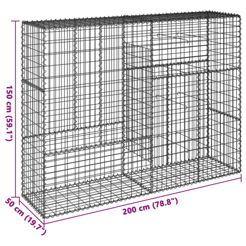 Gabione mit Deckel 200x50x150 cm Verzinktes Eisen