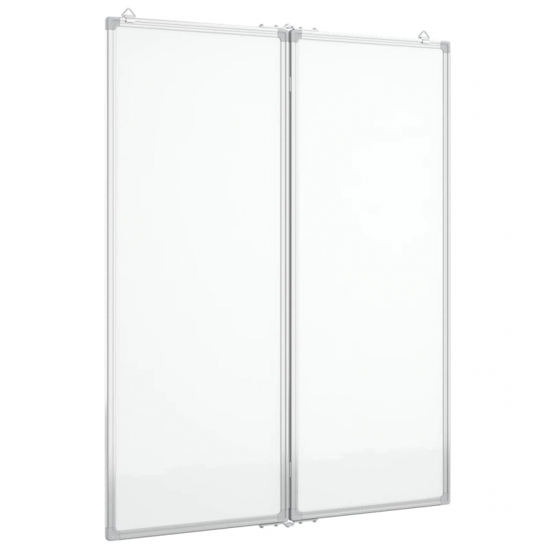 Diese klappbare magnetische Weißwandtafel ist eine ideale Lösung, um einen Platz in deinem Zuhause oder Büro zu schaffen, an dem man schreiben, zeichnen oder Fotos anbringen kann. Glatte Oberfläche: Das magnetische Whiteboard hat eine lackierte, glatte Oberfläche, die sich leicht beschriften und reinigen lässt. Zusätzlich kannst du Fotos und andere Sachen mithilfe von Magneten anbringen.Einfach zu montieren: Das magnetische Whiteboard ist mit 2 beweglichen Haken ausgestattet, die du an deine Bedürfnisse anpassen und schnell an jedem von dir gewünschten Ort anbringen kannst.Faltbar: Das magnetische Whiteboard besteht aus zwei aufklappbaren Paneelen, die mehr Platz zum Schreiben bieten und je nach Bedarf angewinkelt und zusammengeklappt werden können.Sicherheit: Das magnetische Whiteboard hat einen starken Aluminiumrahmen und eine Metallrückwand, komplett mit Schutzabdeckungen an allen vier Ecken, um die Sicherheit der Benutzer zu gewährleisten.Vielseitig einsetzbar: Magnetische Whiteboards dienen als vielseitiges Instrument für Präsentationen, Unterricht, usw. Es ist für Schulen, Konferenzräume, Büros und Wohnungen geeignet.