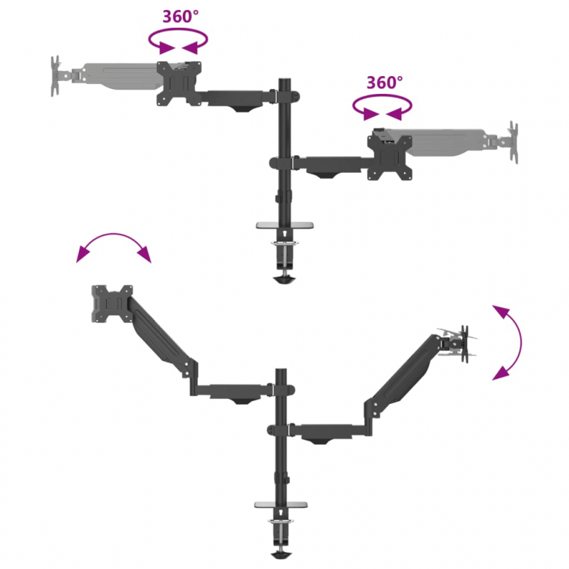 Mit diesem Doppel-Monitorarm kannst du deinen Bildschirm richtig positionieren, was sich positiv auf deine Produktivität, Gesundheit und dein Wohlbefinden auswirkt. Vielfach verstellbar: Der doppelte Monitorarm verfügt über eine Gasfeder, die eine 90°-Aufwärtsneigung, 70°-Abwärtsneigung, 360°-Drehung des Bildschirms und einen Schwenkbereich von bis zu 180° ermöglicht. Durch die verstellbare Höhe und den verstellbaren Winkel kannst du Schultern und Nacken entlasten.Kompatibilität: Der Doppel-Monitorarm ist mit Bildschirmen von maximal 27 Zoll mit VESA-Montagelöchern von 75x75 mm oder 100x100 mm auf der Rückseite kompatibel. Die maximale Belastbarkeit dieser Monitorarm beträgt 20 kg.Langlebig und platzsparend: Der Monitorarm ist aus Stahl gefertigt und daher langlebig und stabil. Verwende den dualen Monitorarm, um deinen Bildschirm zu erhöhen, Platz zu schaffen und die Vorteile eines sauberen und geräumigen Schreibtisches zu genießen.Zwei Montagemöglichkeiten: Dieser Doppelmonitorarm kann auf zwei verschiedene Arten montiert werden: entweder mit einer C-Klemme oder über Kabeldurchführung. Er eignet sich für Schreibtische mit einer Stärke zwischen 10 mm und 100 mm. Wähle einfach die bevorzugte Montageoption aus und schaffe zusätzlichen Platz auf deinem Schreibtisch.Kabelmanagement: Durch das Kabelmanagement-System wird Kabelsalat vermieden, um für mehr Ordnung in deinem Büro zu sorgen.