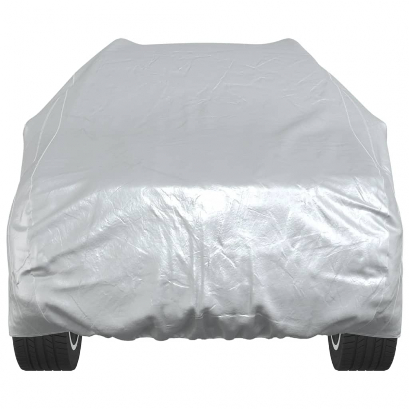 Diese Autoabdeckung schützt dein SUV vor UV-Strahlen, Schnee, Regen, Frost, Staub, Laub, industrieller Verschmutzung und Vogelkot und eignet sich ideal für den Innen- und Außenbereich. Allwetterschutz: Diese Autoschutzhülle besteht aus atmungsaktivem Polyester mit PU-Beschichtung und ist somit das ganze Jahr über wasserdicht und UV-beständig. Die Doppelnähte erhöhen ihre Festigkeit und Haltbarkeit.Silberbeschichtung zur Wärmeisolierung: Die silberne Oberfläche der Autoplane reflektiert mehr Sonnenlicht und UV-Strahlen und hält dein Auto bei heißem Wetter kühler. Dies schützt den Innenraum deines Autos vor Hitzeschäden.Winddichtes Design: Die elastischen Kanten der Hülle sorgen für eine feste Passform, während die verstellbaren Gurte mit Schnallen an der Unterseite das Wegblasen der Plane an windigen Tagen vermeiden.Einfache Lagerung: Diese Autoschutzhülle wird samt einer praktischen Aufbewahrungstasche geliefert, in der sie sich bei Nichtgebrauch leicht verstauen lässt. Gut zu wissen:Bitte nimm vor dem Erwerb genaue Messungen deines Autos vor, um sicherzustellen, dass du die richtige Größe auswählst.