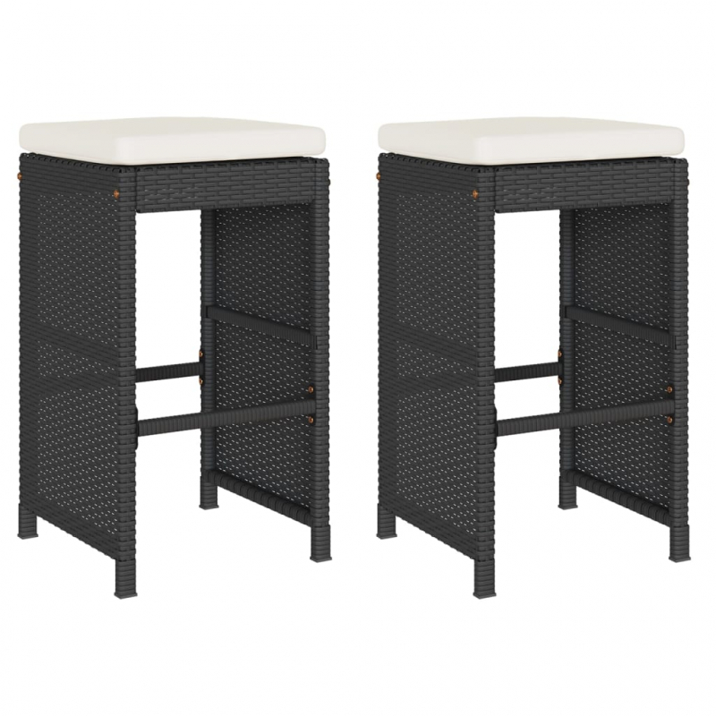 Garten-Barhocker mit Kissen 2 Stk. Schwarz Poly Rattan
