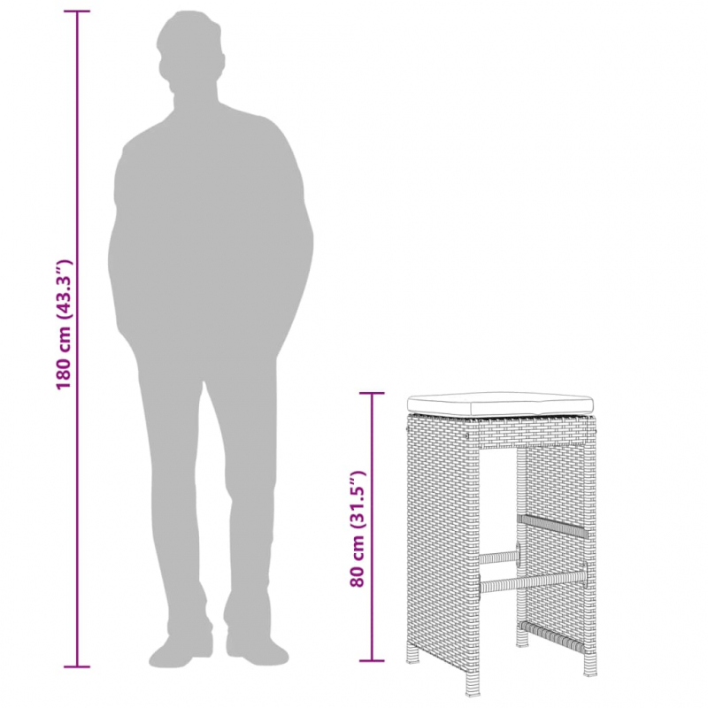 Entspanne dich und genieße die Natur auf diesen bequemen Barhockern! Langlebiges Material: PE-Rattan, auch als Poly Rattan bekannt, ist ein robustes, pflegeleichtes synthetisches Material, das die Optik von natürlichem Rattan aufweist. Es kennzeichnet sich durch ein geringes Eigengewicht und lässt sich einfach reinigen. Aufgrund seiner Haltbarkeit und Witterungsbeständigkeit wird es häufig bei der Herstellung von Gartenmöbeln verwendet.Bequemes Sitzerlebnis: Dieser Gartensessel mit dick gepolsterten Kissen bietet ein angenehmes Sitzgefühl.Abnehmbarer und waschbarer Bezug: Diese Sitzkissen verfügen über abnehmbare Bezüge für einfaches Waschen und Pflegen. Robuster und stabiler Rahmen: Dank des pulverbeschichteten Stahlrahmens ist das Möbelstück robust, stabil und für den täglichen Einsatz im Außenbereich geeignet. Gut zu wissen:Wir empfehlen dir, deine Gartenmöbel mit einer wasserdichten Hülle zu schützen, um lange Zeit eine ansprechende Optik aufzuweisen.