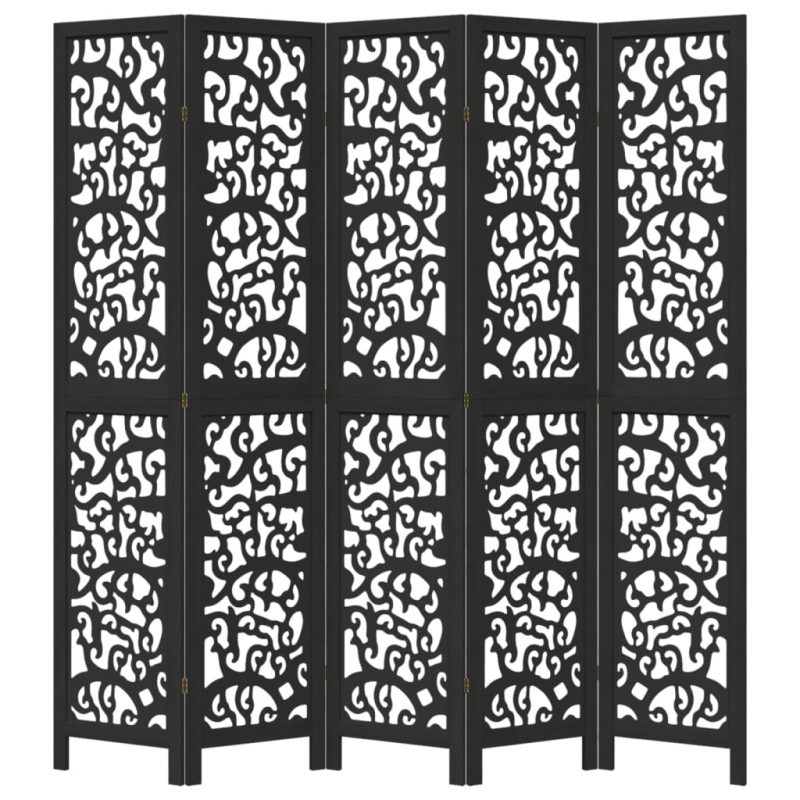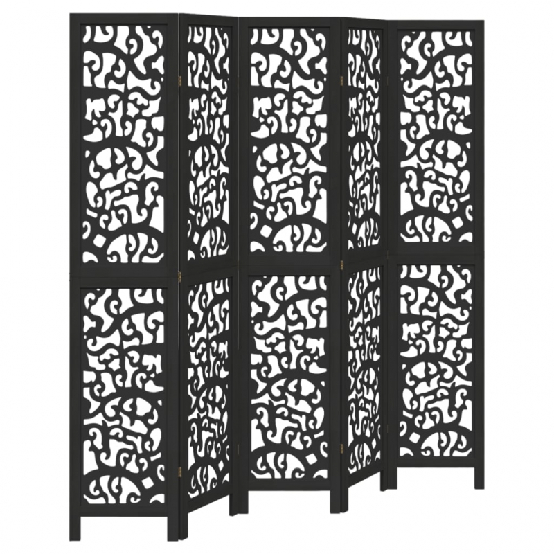 5-tlg. Paravent Schwarz Massivholz Paulownia