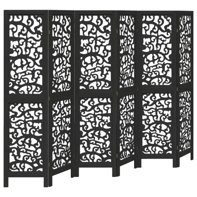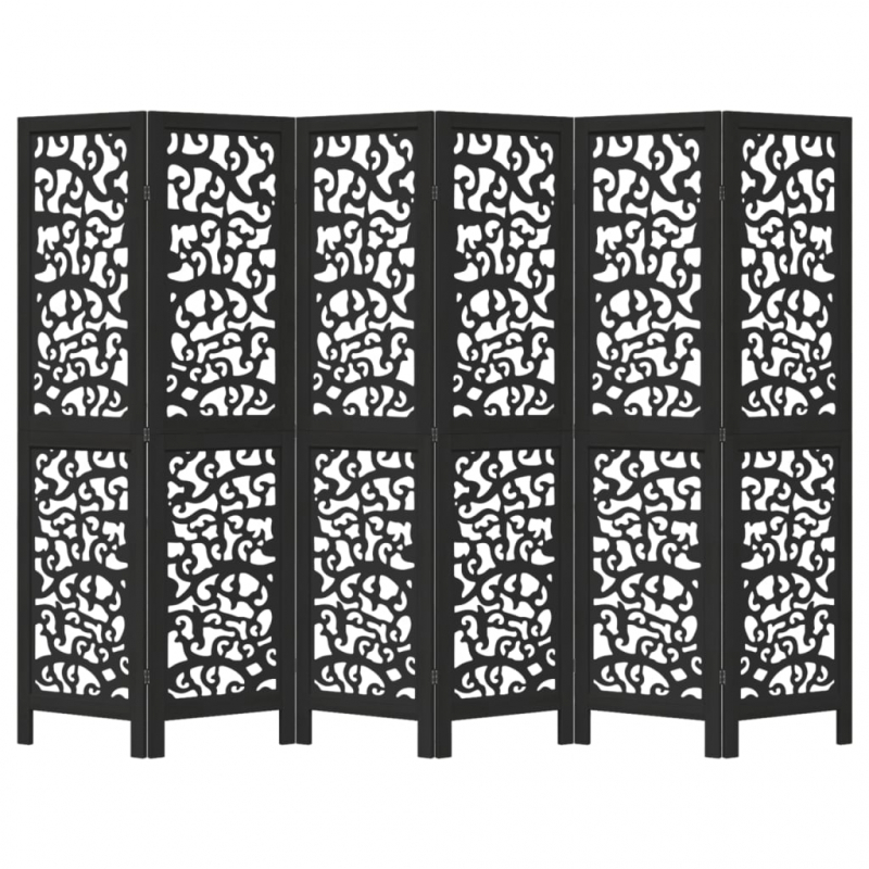6-tlg. Paravent Schwarz Massivholz Paulownia