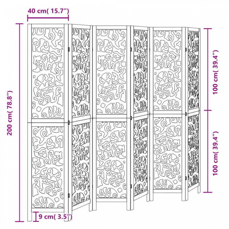 Verleihe deinem Wohnraum eine auffällige dekorative Note mit diesem bezaubernden Raumteiler. Langlebig und leicht zu reinigen: Der Sichtschutz ist aus Paulownia-Massivholz und Holzwerkstoff gefertigt, wodurch er pflegeleicht und strapazierfähig ist.Robuster Rahmen: Der Rahmen aus massivem Paulownia-Holz sorgt für Robustheit und Stabilität. Paulownia-Massivholz ist ein wunderschönes Naturmaterial. Paulowniaholz ist widerstandsfähig gegen Schädlingsbefall und Verrottung.Flexibel und einfach faltbar: Die Paravent-Teile sind jeweils durch 3 Metallscharniere miteinander verbunden. Die oberen und unteren Paneele dieser spanischen Wand sind durch verborgene 2-in-1-Scharniere verbunden. Der Raumtrenner kann also leicht bis zu einem gewissen Grad zusammengeklappt werden; dadurch spart er bei Nichtgebrauch Platz.Vielseitig einsetzbar: Die Trennwand eignet sich hervorragend zur Schaffung von Privatsphäre im Schlafzimmer, Wohnzimmer, Büro und anderen Räumen. Du kannst das Paravent auch vor ein Fenster stellen, um intensives Sonnenlicht abzuschirmen.Attraktiver Look: Mit seinem filigranen Muster verleiht diese faltbare Trennwand jedem Raum mehr Charakter. Achtung:Nur für den Innenbereich!