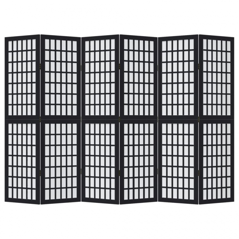 6-tlg. Paravent Schwarz Massivholz Paulownia