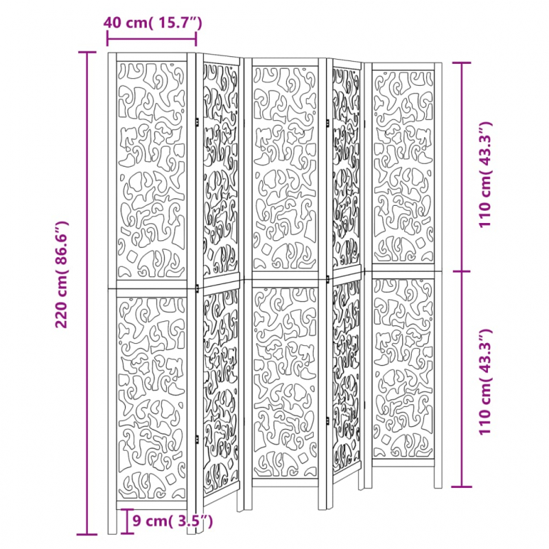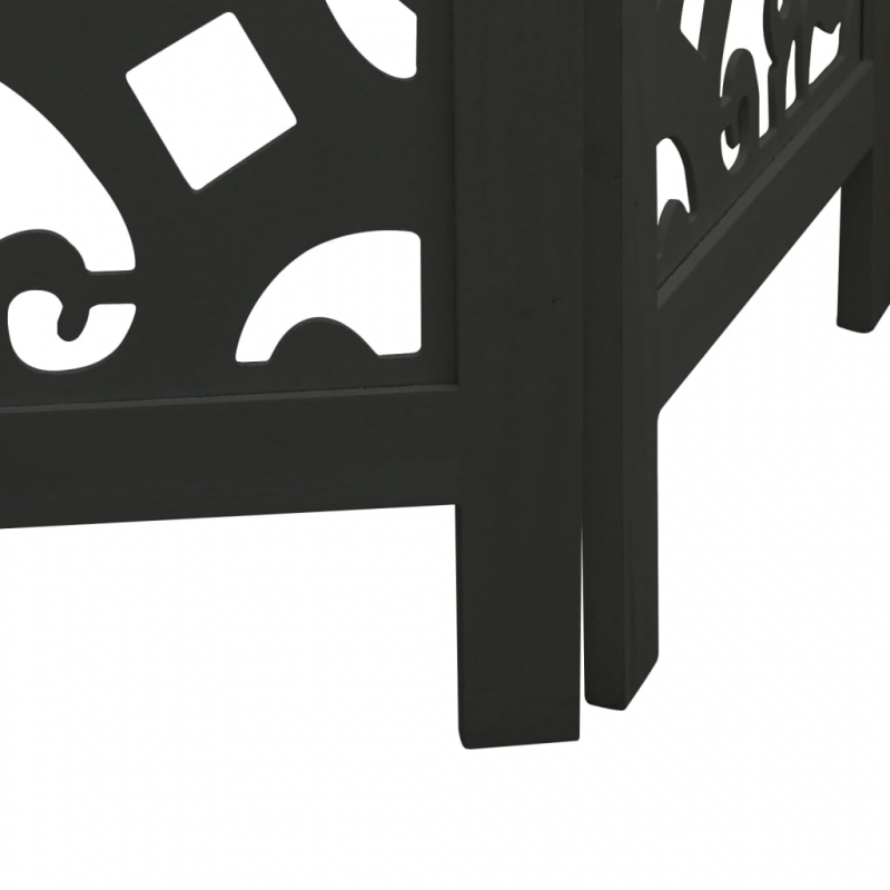 5-tlg. Paravent Schwarz Massivholz Paulownia