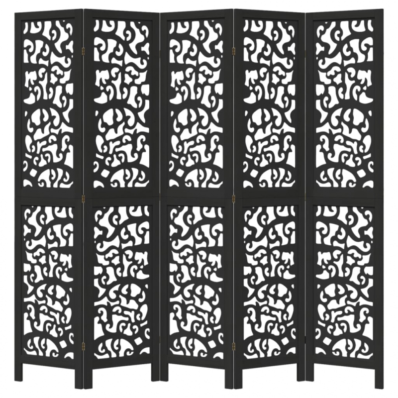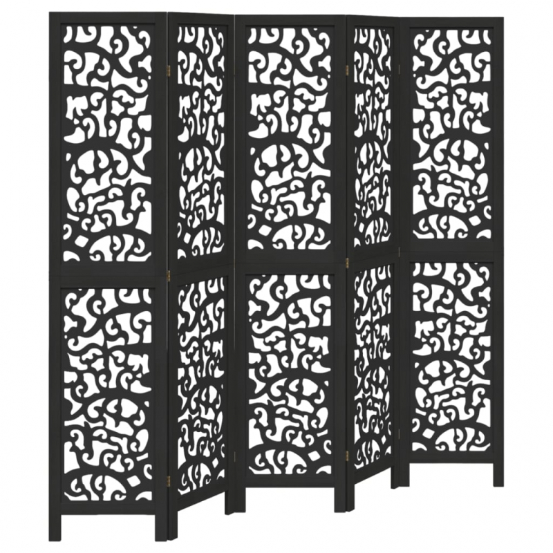 5-tlg. Paravent Schwarz Massivholz Paulownia