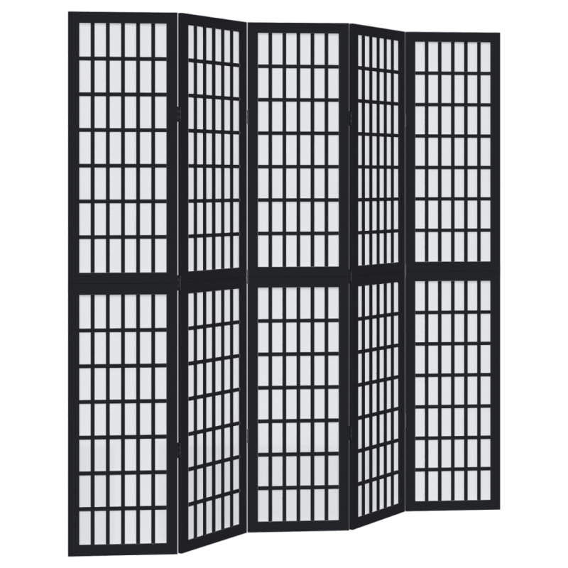 5-tlg. Paravent Schwarz Massivholz Paulownia