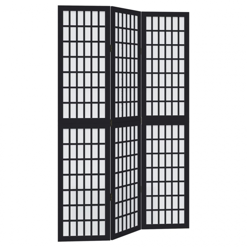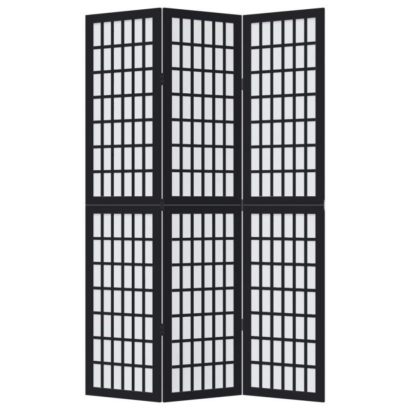 3-tlg. Paravent Schwarz Massivholz Paulownia