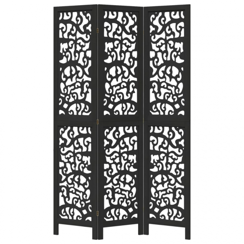 3-tlg. Paravent Schwarz Massivholz Paulownia