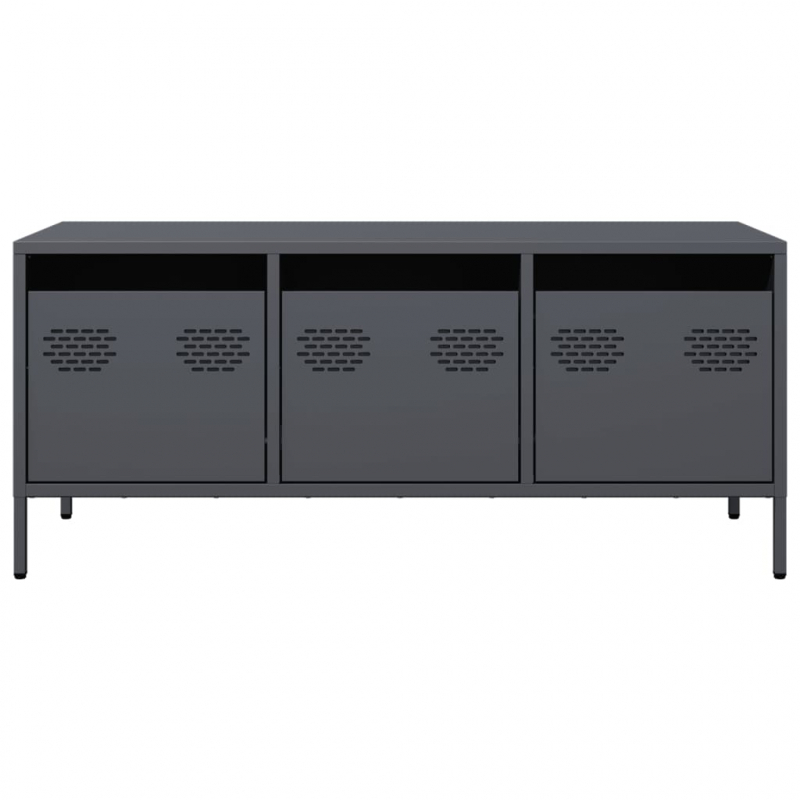 Dieser robuste TV-Schrank im Industrie-Stil ist eine zeitlose Ergänzung zu deinem Schlafzimmer oder Wohnzimmer. Stabiles Material: Das Gestell des TV-Schranks besteht aus kaltgewalztem Stahl. Dies ist eine Art kohlenstoffarmer Stahl, der im „Kaltwalzverfahren“ hergestellt und bei nahezu normalen Raumtemperaturen verarbeitet wird. Kaltgewalzter Stahl besitzt eine glattere Oberfläche, eine höhere Festigkeit und lässt sich präziser verarbeiten.Reichlich Stauraum: Mit 3 Schubladen versehen, bietet der Schrank reichlich Platz, um verschiedene Alltagssachen übersichtlich und griffbereit zu verstauen.Verstellbare Stellfüße: Dieses TV-Möbel ist mit vier Stellfüßen ausgestattet, um Bodenunebenheiten auszugleichen und Stabilität und Gleichgewicht zu gewährleisten.Einfache Reinigung: Der Schrank aus Metall ist mit einem feuchten Tuch leicht zu reinigen und erfordert wenig Pflege.