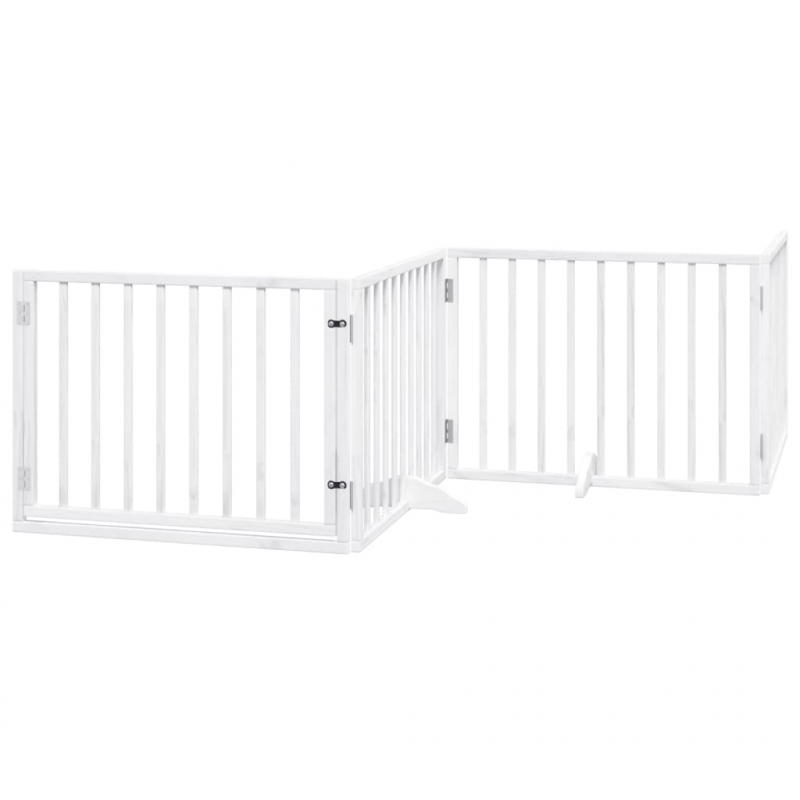 8-tlg. Hundetor mit Tür Faltbar Weiß 640 cm Pappelholz