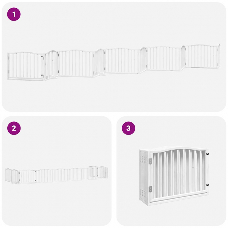 10-tlg. Hundetor mit Tür Faltbar Weiß 800 cm Pappelholz