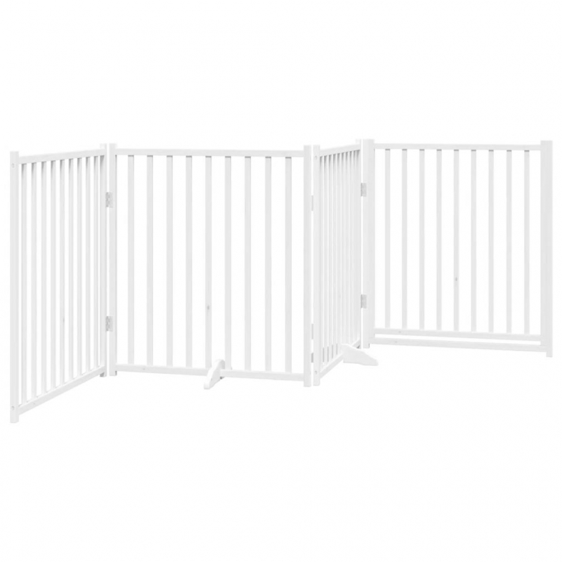 4-tlg. Hundetor mit Tür Faltbar Weiß 320 cm Massivholz Tanne
