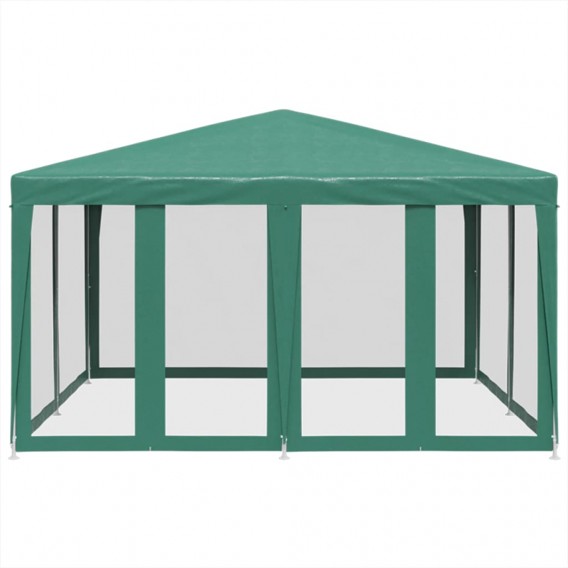 Mit seinem robusten Eisenrahmen, dem wasserfesten Dach und den acht Mesh-Seitenwänden bietet dieses tolle Partyzelt den idealen Schutz vor der Sonne. Erstklassiges Material: Dieser Pavillon besteht aus Polyethylen hoher Dichte (HDPE), das dich vor direkter Sonneneinstrahlung schützt und eine ausreichende Belüftung ermöglicht. Das HDPE wurde speziell behandelt, sodass es auch wasserfest ist.Eisengestell: Das Eisengestell verleiht dem Gartenzelt Robustheit und Stabilität.Praktisches Design: Das Zelt ist mit acht Mesh-Seitenteilen versehen, um Schutz vor lästigen Insekten zu bieten. Ein Seitenteil ist mit 2 Reißverschlüsse versehen, um einen einfachen Zugang zu ermöglichen.Breite Anwendung: Dieses Partyzelt ist eine ideale Wahl für eine Vielzahl von Veranstaltungen im Freien wie Shows, Hochzeiten, Partys, Grillpartys, Festivals usw. Gut zu wissen:Dieses Produkt sollte NIEMALS bei schlechtem Wetter wie starkem Wind, starkem Regen, Schnee, Sturm usw. verwendet werden.
