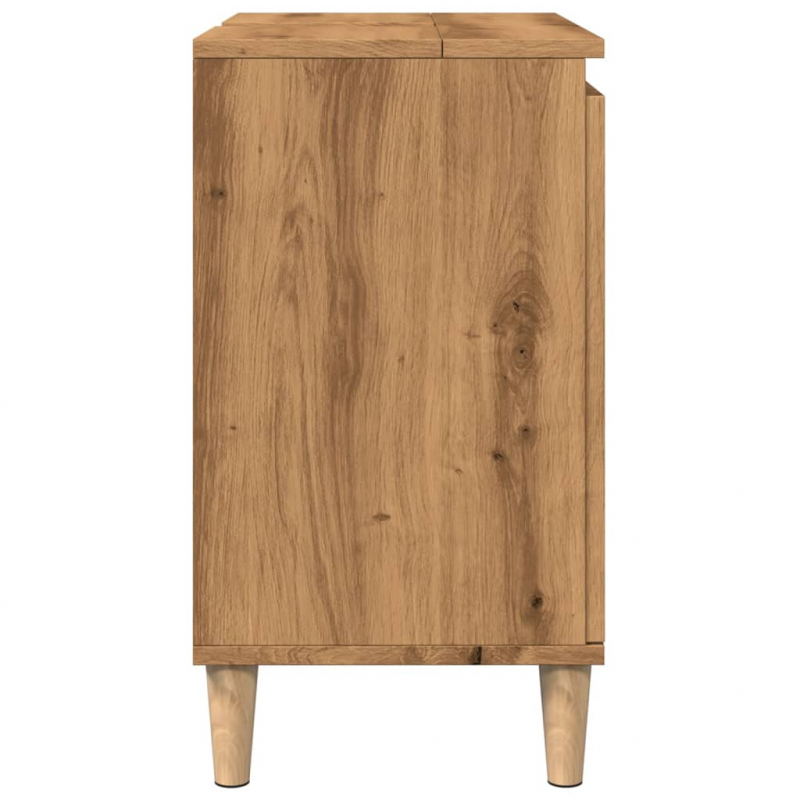 Dieser Waschbeckenunterschrank ist eine großartige Bereicherung für dein Badezimmer und verleiht ihm ein ordentliches und auffälliges Aussehen! Langlebiges Material: Holzwerkstoff ist ein Material von außergewöhnlicher Qualität mit glatter Oberfläche, das sich durch Festigkeit, Stabilität und Feuchtigkeitsbeständigkeit auszeichnet. Aus Holzwerkstoff gefertigt, lässt sich dieser Badschrank einfach reinigen.Reichlich Stauraum: Der Waschbeckenunterschrank verfügt über ein großes Fach, das zusätzlichen Stauraum für Gegenstände in deinem Badezimmer bietet. Die Oberplatte des Schranks bietet den idealen Platz für das Waschbecken.Holzbeine: Die Holzbeine verleihen dem Waschbeckenschrank Robustheit und Stabilität.Praktische Türen: Bewahre wichtige Sachen hinter den Türen in diesem Badschrank auf, um sie vor Staub zu schützen. Gut zu wissen:Das Waschbecken ist nicht im Lieferumfang enthalten. Achtung:Um ein Umkippen zu vermeiden, sollte dieses Produkt mit der mitgelieferten Wandhalterung gesichert werden.