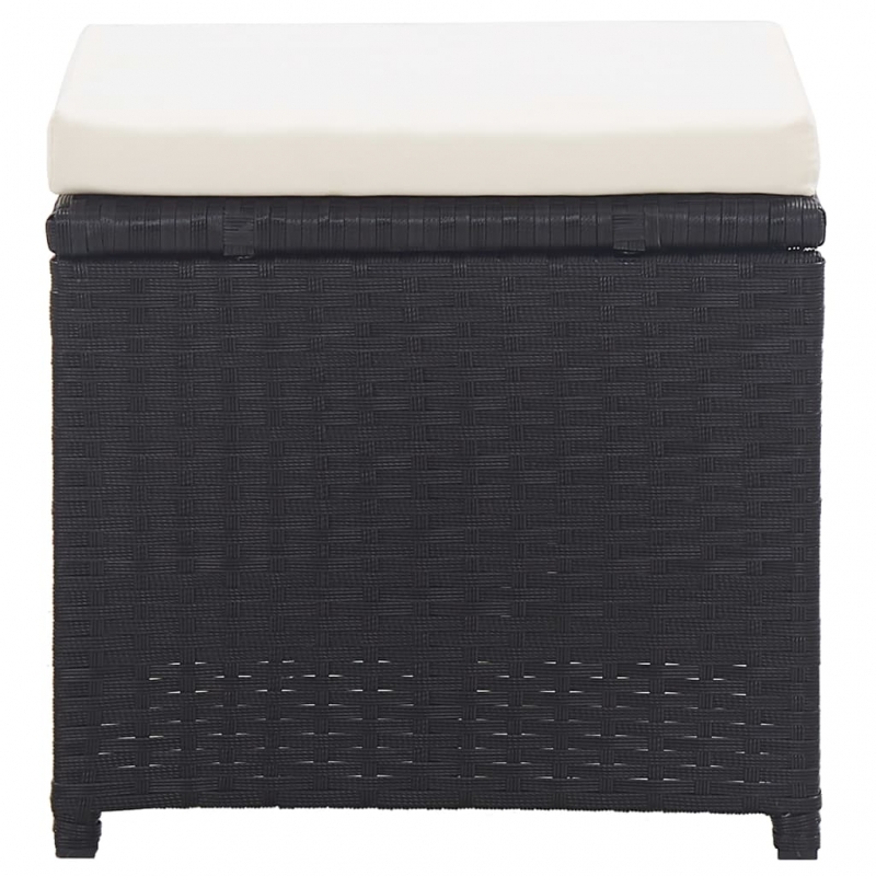 Dieses Set aus 2 Hockern mit sauberem und modernem Design wird eine dezente und praktische Ergänzung zu Ihrem Garten, Ihrer Terrasse oder Ihrem Patio sein. Die wartungsarme Konstruktion aus pulverbeschichtetem Stahl und Poly Rattan sorgt für Robustheit und Haltbarkeit und ist reiß- und verschleißfest. Die dicken Kissen erhöhen Ihren Sitzkomfort. Dank seiner Höhe sind die Gartenhocker auch als Fußstützen einsetzbar. Gönnen Sie sich eine Auszeit, egal ob Sie sitzen oder Ihre Füße auf diesen bequemen Rattanhocker hochlegen. Die Lieferung umfasst 2 Hocker mit Auflagen.