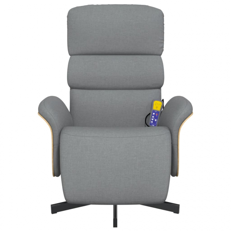 Lehne dich zurück und entspanne dich in diesem äußerst bequemen Massagesessel! Vibrationsfunktion: Dank der 6 Massagepunkte genießt du eine gezielte Massage. Zudem lassen sich verschiedene Massageprogramme über die mitgelieferte Handsteuerung auswählen. Die Massagefunktion wird über den USB-Anschluss betrieben, der eine zertifizierte 5-V-USB-Stromquelle erfordert (nicht im Lieferumfang enthalten).Verstellbare Rückenlehne und Fußstütze: Dieser Massagesessel ist mit Liegefunktion ausgestattet, sodass du Rückenlehne und Fußstütze nach Belieben einstellen kannst. Die Rückenlehne kann von 105 bis 125 Grad geneigt werden.Um 360 Grad drehbar: Der Massagesessel lässt sich um 360 Grad schwenken, was ihm Flexibilität verleiht.Bequemes Sitzerlebnis: Die dick gepolsterte Sitzfläche, die Rückenlehne und die breiten Armlehnen sorgen für ein behagliches und wohliges Sitzgefühl. Der Bezug aus Stoff weist eine schlichte und saubere Optik auf und ist auch atmungsaktiv und langlebig.Solider und stabiler Rahmen: Der Rahmen aus Sperrholz und Metall sorgt für Robustheit und hohe Stabilität. Dieser Massagesessel ist bequem und langlebig. Gut zu wissen:Um Platz zu sparen, werden einige Teile oder Kissen in die Möbel gepackt – überprüfen Sie die Reißverschlussfächer oder unter dem Sitzbezug auf versteckte Komponenten.