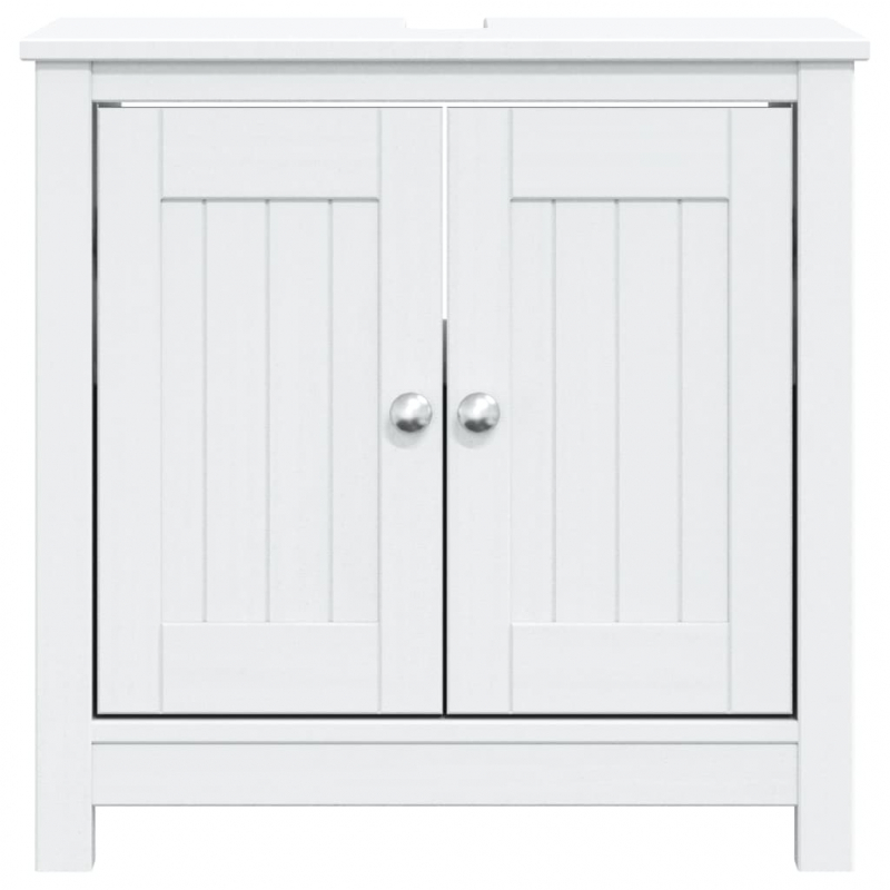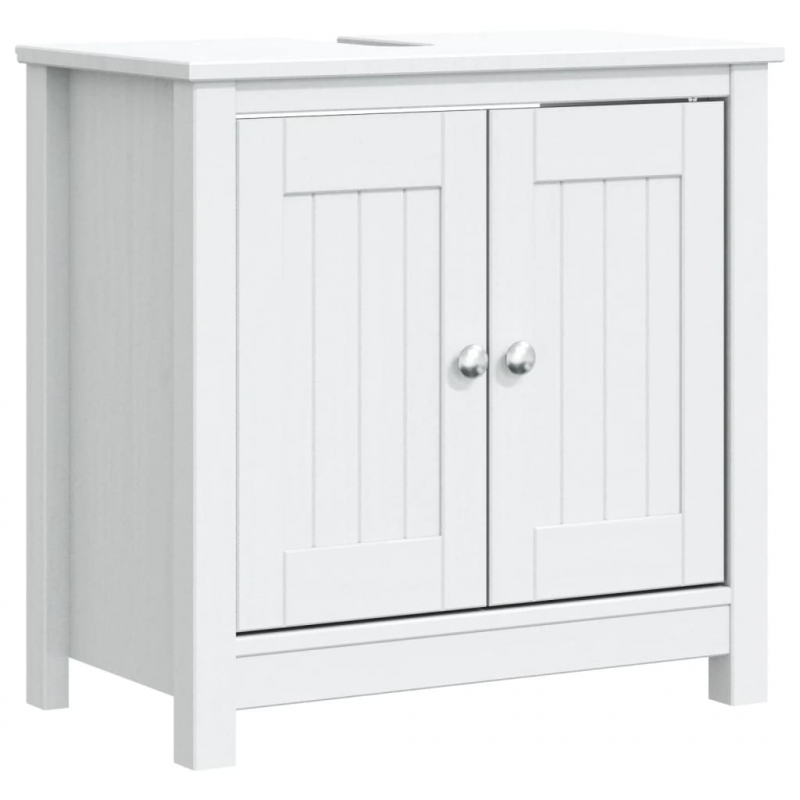 Dieser Waschbeckenunterschrank ist eine hervorragende Bereicherung für dein Badezimmer und verleiht ihm eine aufgeräumte und markante Optik! Massives Kiefernholz: Massives Kiefernholz ist ein wunderschönes Naturmaterial. Kiefernholz weist eine gerade Maserung auf und die Aststellen verleihen dem Material seine charakteristische, rustikale Optik.Reichlich Stauraum: Der Waschbeckenschrank verfügt über 2 Böden, die reichlich Platz bieten, um wichtigste Toilettenartikel und Badutensilien wie Seife, Shampoo, Zahnpasta usw. zu verstauen.Platzsparendes Design: Die Oberplatte des Badschranks bietet den idealen Platz für das Waschbecken. So kannst du auch den freien Platz unter dem Waschbecken optimal ausnutzen.Einfache Reinigung: Dank der UV-Lackierung weist der Schrank eine glatte Oberfläche auf und lässt sich einfach reinigen. Der Badezimmerschrank ist auch wasserbeständig und daher auf eine jahrelange Lebensdauer ausgelegt. Achtung:Um ein Umkippen zu vermeiden, sollte dieses Produkt mit einer Wandhalterung gesichert werden (nicht im Lieferumfang enthalten).