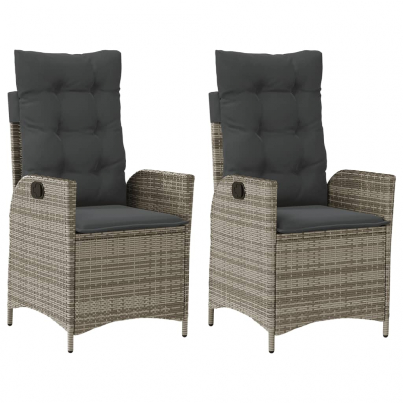 Gartensessel mit Kissen 2 Stk. Verstellbar Grau Poly Rattan