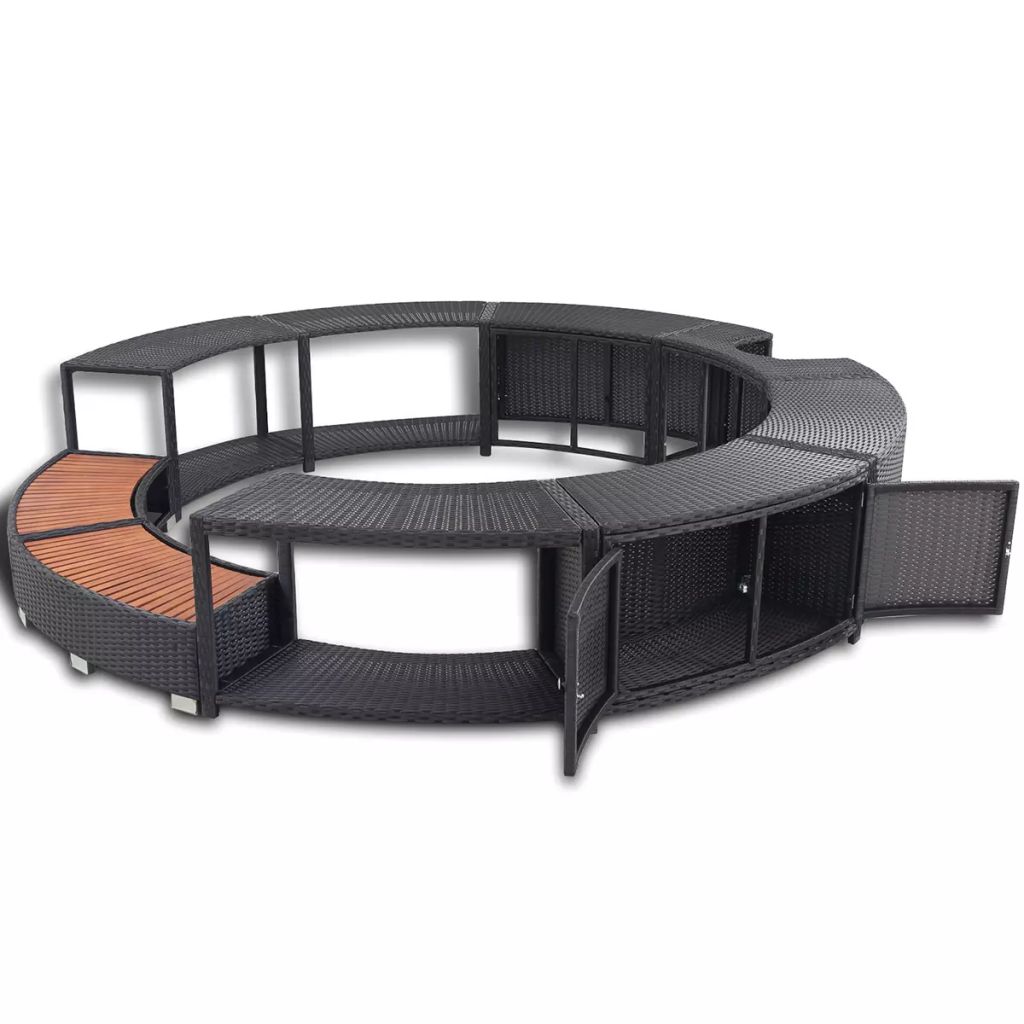 Diese elegante Whirlpool-Einfassung aus Poly-Rattan ist ein vielseitiges Zubehör für Ihren Whirlpool. Sie verleiht dem Pool ein schickes und modernes Aussehen und schafft gleichzeitig einen funktionalen und benutzerfreundlichen Whirlpoolbereich. Mit integriertem Stauraum und einer Aussparung hält die Whirlpool-Umrandung alles Wesentliche geordnet und in Griffweite. Der robuste Stahlrahmen und das witterungsbeständige tropische Eukalyptus-Hartholz halten auch starker Beanspruchung stand und sind äußerst langlebig. Sie werden den Komfort, die Langlebigkeit und das Flechtdesign dieser Whirlpool-Einfassung sicher zu schätzen wissen!