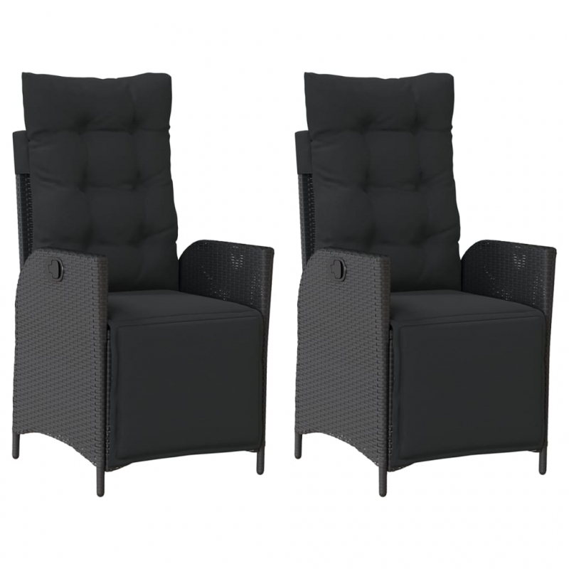Gartensessel mit Fußteil 2 Stk. Verstellbar Schwarz Poly Rattan