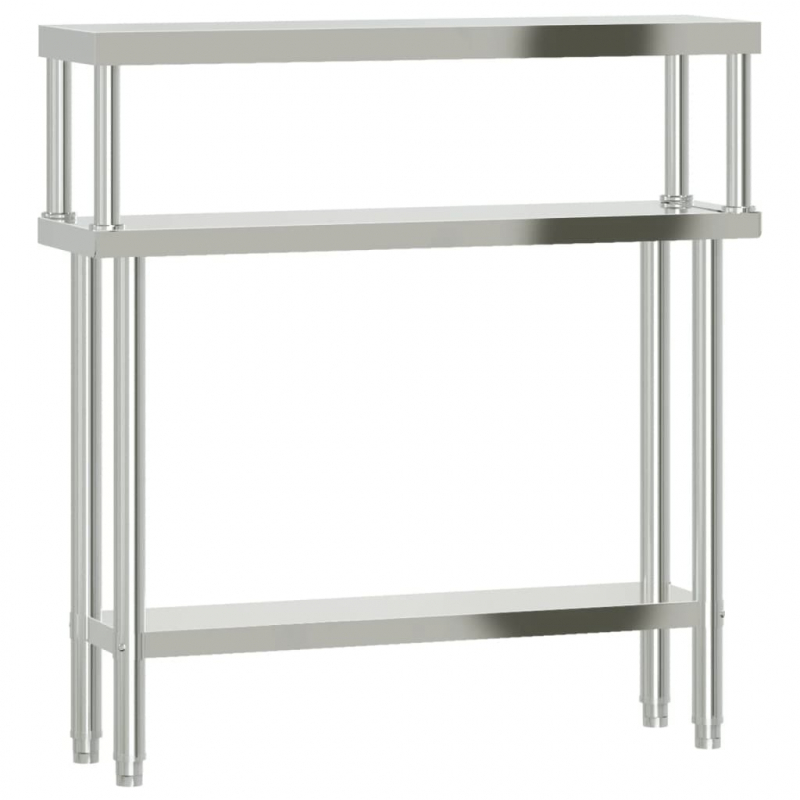 Dieser Küchentisch eignet sich perfekt für die Zubereitung und Lagerung von Lebensmitteln und lässt sich in Küchen, Bars, Restaurants, Schulen sowie anderen gewerblichen Einrichtungen einsetzen. Langlebige und stabile Konstruktion: Der Arbeitstisch ist aus Edelstahl gefertigt, der korrosions- sowie rostbeständig ist, und ist dadurch auf eine jahrelange Lebensdauer ausgelegt. Die glatte Oberfläche lässt sich leicht reinigen und pflegen und gewährleistet einen hygienischen Bereich für die Lebensmittelzubereitung.Großzügiger Arbeitsplatz: Der Vorbereitungstisch aus Edelstahl verfügt über eine untere Ablage und ein Überregal, die zusätzlichen Stauraum schaffen und reichlich Platz für eine Mikrowelle, Küchenutensilien oder andere Geräte bieten.Verstellbare Füße: Die verstellbaren, rutschfesten Füße gewährleisten die Stabilität des Küchentisches und verhindern auch die Beschädigung des Fußbodens. Achtung:Um ein Umkippen zu vermeiden, sollte dieses Produkt mit der mitgelieferten Wandhalterung gesichert werden.