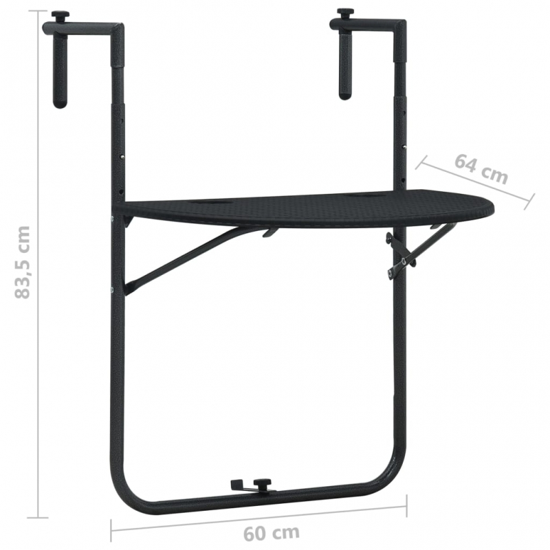 Dieser Hängetisch ist eine großartige Bereicherung für deinen Balkon und kann als Beistelltisch für Getränke oder als praktische Arbeitsplatte für Sachen wie Gartengeräte und Topfpflanzen dienen. Aus haltbarem Kunststoff gefertigt, ist die Tischplatte witterungsbeständig und lässt sich auch einfach reinigen. Die Rattan-Optik verleiht deinem Balkon einen Hauch von natürlichem Charme. Mit einem robusten Stahlgestell versehen, ist der Tisch sehr stabil. Zudem lässt sich die Höhe in 3 Positionen verstellen, um all deinen Anforderungen gerecht zu werden. Der Tisch kann bei Nichtgebrauch platzsparend heruntergeklappt werden.