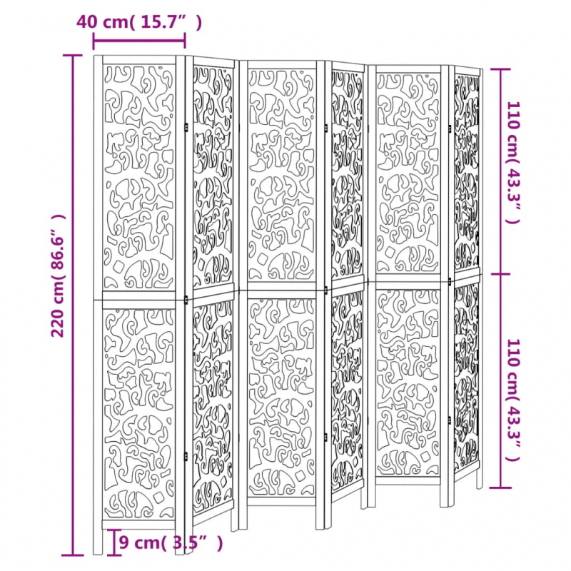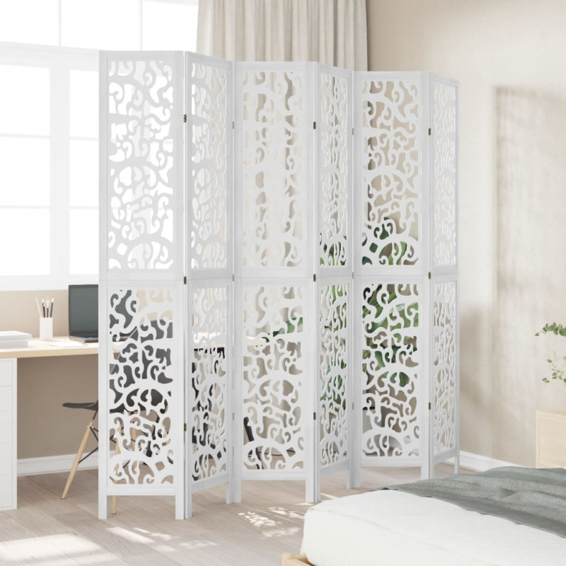 Verleihe deinem Wohnraum eine auffällige dekorative Note mit diesem bezaubernden Raumteiler. Langlebig und leicht zu reinigen: Der Sichtschutz ist aus Paulownia-Massivholz und Holzwerkstoff gefertigt, wodurch er pflegeleicht und strapazierfähig ist.Robuster Rahmen: Der Rahmen aus massivem Paulownia-Holz sorgt für Robustheit und Stabilität. Paulownia-Massivholz ist ein wunderschönes Naturmaterial. Paulowniaholz ist widerstandsfähig gegen Schädlingsbefall und Verrottung.Flexibel und einfach faltbar: Die Paravent-Teile sind jeweils durch 3 Metallscharniere miteinander verbunden. Die oberen und unteren Paneele dieser spanischen Wand sind durch verborgene 2-in-1-Scharniere verbunden. Der Raumtrenner kann also leicht bis zu einem gewissen Grad zusammengeklappt werden; dadurch spart er bei Nichtgebrauch Platz.Vielseitig einsetzbar: Die Trennwand eignet sich hervorragend zur Schaffung von Privatsphäre im Schlafzimmer, Wohnzimmer, Büro und anderen Räumen. Du kannst das Paravent auch vor ein Fenster stellen, um intensives Sonnenlicht abzuschirmen.Attraktiver Look: Mit seinem filigranen Muster verleiht diese faltbare Trennwand jedem Raum mehr Charakter. Achtung:Nur für den Innenbereich!