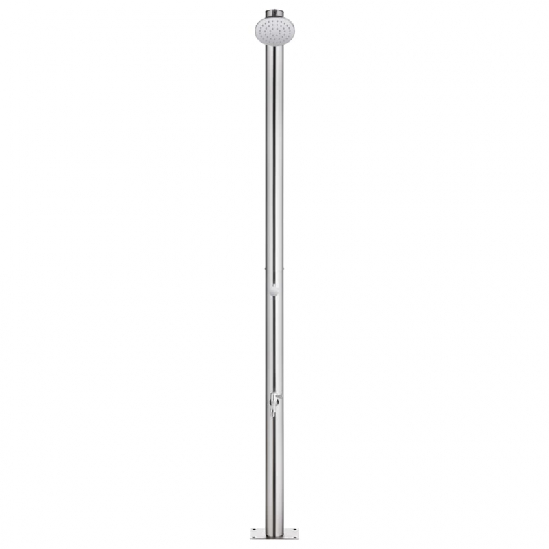Diese Gartendusche mit modernem Design ist eine großartige Ergänzung für Ihren Pool und andere Außenbereiche. Die Außendusche besteht aus Edelstahl und ist somit witterungsbeständig. Das Duschsystem verfügt über eine Kopfdusche und einen Fußwaschhahn, um Ihre Anforderungen an Gartenarbeit, Bewässerung und schnelles Duschen zu erfüllen. Die haltbare und korrosionsbeständige Bodenplatte besteht aus hochwertigem WPC und ist mit gebürstetem Edelstahl umrahmt, was eine jahrelange Haltbarkeit gewährleistet. Es bietet außerdem ein Höchstmaß an Hygieneschutz und ist somit ideal für Ihren Außenbereich. Dank seiner Robustheit und Vielseitigkeit kann die Duschwanne auch als Unterlage für eine Poolleiter dienen. Tauchen Sie ein in ein wirklich entspannendes Duscherlebnis und genießen Sie den modernen Stil dieses Außenduschsystems!