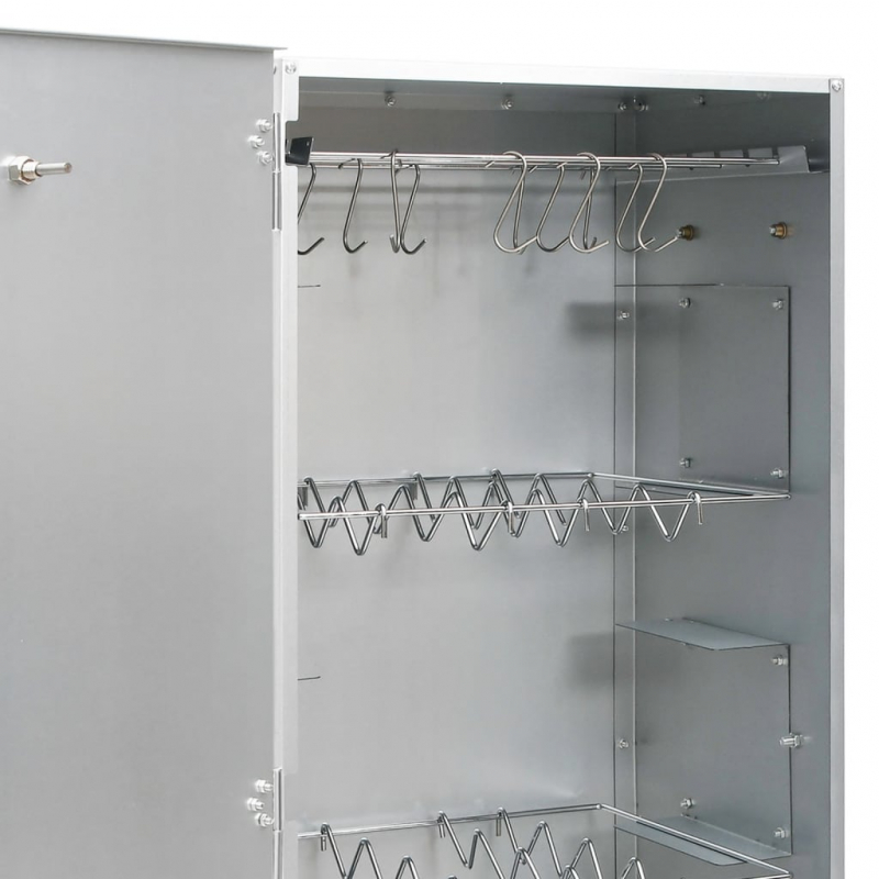 Mit diesem multifunktionalen Räucherofen mit Holzspänen und Kaltrauchgenerator kannst du ein Festmahl zubereiten und eine gemütliche Zeit im Freien mit deiner Familie genießen! Langlebiges Material: Stahl ist ein außergewöhnlich hartes und starkes Material. Er bietet Robustheit und Stabilität. Die Verzinkung bietet einen besseren Schutz gegen Rost und ist für Produkte geeignet, die im Freien verwendet werden.Viel Platz zum Räuchern: Der Outdoor-Smoker bietet viel Platz zum Räuchern von Fleisch, Fisch, Würstchen und mehr. Die mitgelieferten S-förmigen Haken und Roste erleichtern die Zubereitung der Speisen.Mit Thermometer: Der Räucherofen ist mit einem Thermometer ausgestattet, um beste Ergebnisse zu erzielen.Kaltrauchgenerator: Fülle ihn einfach mit Sägemehl und zünde ihn mit einem Teelicht an, bis das Sägemehl anfängt, seine Farbe zu wechseln. Danach kann das Teelicht entfernt und der Kaltraucherzeuger in den Räucherschrank gelegt werden. Dank des kompakten, quadratischen Gitters brennen die Räucherspäne für bis zu 16 Stunden gleichmäßig und langsam ab. Achtung:Der Grill darf nicht in geschlossenen und/oder bewohnbaren Bereichen wie Häusern, Zelten, Wohnwagen, Wohnmobilen und Booten verwendet werden. Ansonsten besteht die Gefahr einer Kohlenmonoxidvergiftung, die zum Tod führen kann.