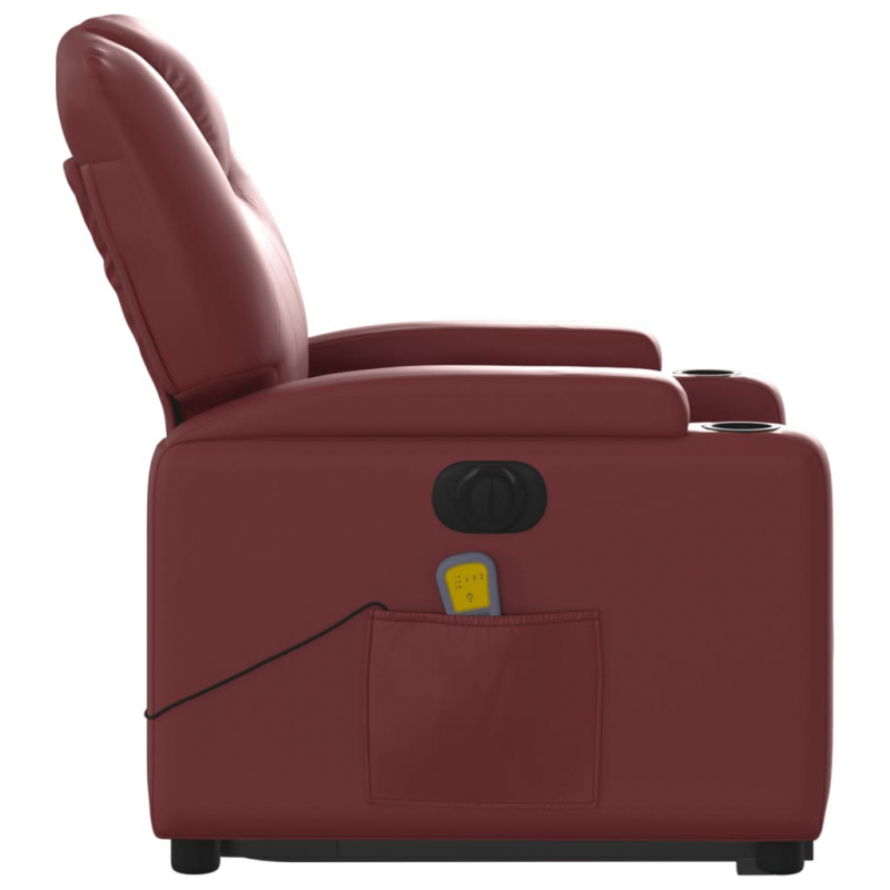 Lehne dich zurück und entspanne dich in diesem äußerst bequemen elektrischen Massagesessel mit Aufstehhilfe! Elektrische Aufstehhilfe: Dieser Relaxsessel ist mit einem Elektromotor zum Anheben ausgestattet. Dank der Aufstehhilfe, die den gesamten Sessel nach oben bringt, kannst du ganz einfach auf Knopfdruck aufstehen, ohne deinen Rücken und deine Knie zu belasten.Elektrische Liegefunktion: Dieser Relaxsessel ist mit einem Elektromotor ausgestattet, der Fußstütze und Rückenlehne durch einfaches Drücken des seitlichen Knopfes automatisch in jede gewünschte Position bringt. Diese Funktion ermöglicht eine maximale Neigung von 135 Grad. Darüber hinaus lässt sich die Rückenlehne auf Knopfdruck automatisch in die ursprünglichen Position zurückbringen.Vibrationsfunktion: Dank der 6 Massagepunkte genießt du eine gezielte Massage. Zudem lassen sich verschiedene Massageprogramme über die mitgelieferte Handsteuerung auswählen. Die Massagefunktion wird über den USB-Anschluss betrieben, der eine zertifizierte 5-V-USB-Stromquelle erfordert (nicht im Lieferumfang enthalten).Bequemes Sitzerlebnis: Die dick gepolsterte Sitzfläche, die Rückenlehne und die breiten, mit Kunstleder bezogenen Armlehnen sorgen für ein behagliches und angenehmes Sitzgefühl. Kunstleder ist ein äußerst langlebiges Material. Es ist schmutzabweisend und lässt sich mit einem feuchten Tuch einfach reinigen. Durch die glatte Oberfläche weist es die luxuriöse Schönheit von Echtleder auf.Praktische Getränkehalter und Seitentasche: Dieser Sessel verfügt über zwei praktische Getränkehalter und eine Seitentasche, in der du deine Fernbedienung oder andere wichtige Sachen griffbereit aufbewahren kannst.Solider und stabiler Rahmen: Der Rahmen aus Holz und Metall sorgt für eine solide Struktur und hohe Stabilität. Dieser TV-Sessel ist bequem und langlebig.