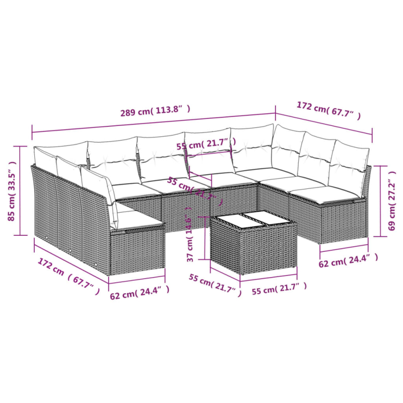 10-tlg. Garten-Sofagarnitur mit Kissen Braun Poly Rattan