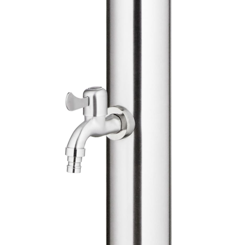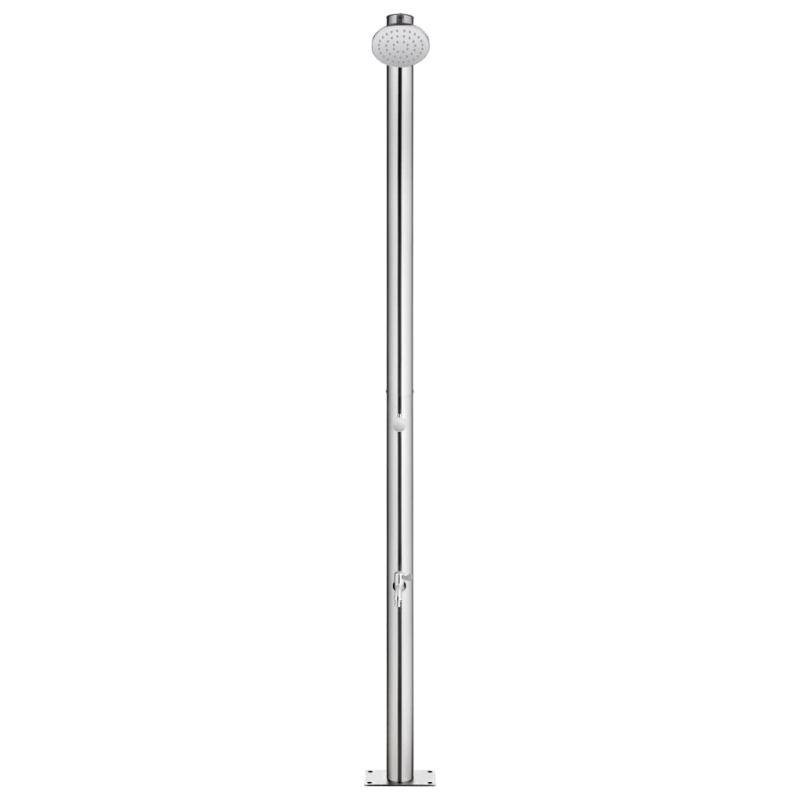Diese Gartendusche mit modernem Design ist eine großartige Ergänzung für Ihren Pool und andere Außenbereiche. Die Außendusche besteht aus Edelstahl und ist somit witterungsbeständig. Das Duschsystem verfügt über eine Kopfdusche und einen Fußwaschhahn, um Ihre Anforderungen an Gartenarbeit, Bewässerung und schnelles Duschen zu erfüllen. Die haltbare und korrosionsbeständige Bodenplatte besteht aus hochwertigem WPC und ist mit gebürstetem Edelstahl umrahmt, was eine jahrelange Haltbarkeit gewährleistet. Es bietet außerdem ein Höchstmaß an Hygieneschutz und ist somit ideal für Ihren Außenbereich. Dank seiner Robustheit und Vielseitigkeit kann die Duschwanne auch als Unterlage für eine Poolleiter dienen. Tauchen Sie ein in ein wirklich entspannendes Duscherlebnis und genießen Sie den modernen Stil dieses Außenduschsystems!