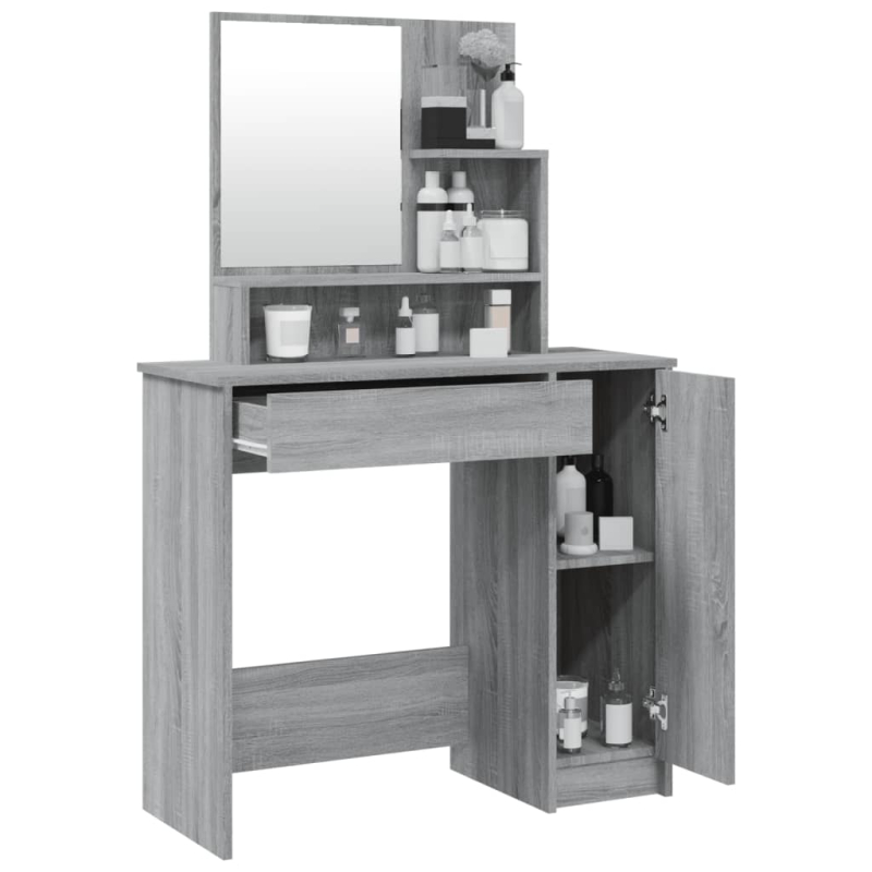 Dieser Frisiertisch verleiht deinem Schlafzimmer einen zeitlosen, raffinierten Look. Der Schminktisch mit Spiegel ist eine großartige Ergänzung zu deinem Schlafzimmerdekor und bietet auch Platz zur griffbereiten Aufbewahrung deiner Kosmetika! Erstklassiges Material: Holzwerkstoff ist ein Material hoher Qualität mit glatter Oberfläche, das sich durch Festigkeit, Robustheit und Feuchtigkeitsbeständigkeit auszeichnet. Aus Holzwerkstoff gefertigt, lässt sich der Schminktisch einfach reinigen.Viel Stauraum: Die Schublade und die Ablagen des Schminktisches bieten Platz zur ordentlichen Aufbewahrung deiner Kosmetika.Allzweckspiegel: Der schöne Spiegel bietet eine klare Sicht beim Auftragen von Make-up und verleiht dem Schminktisch eine elegante Note.Praktische Tür: Sorge für Ordnung in deinem Zimmer, indem du wichtige Kleinigkeiten in diesem Schminktisch hinter der Tür versteckst. Warnung:Um das Umkippen zu verhindern, muss dieses Produkt mit der mitgelieferten Wandhalterung gesichert werden. Hinweis:Jedes Produkt wird mit einer Montageanleitung in der Verpackung für eine einfache Montage geliefert.