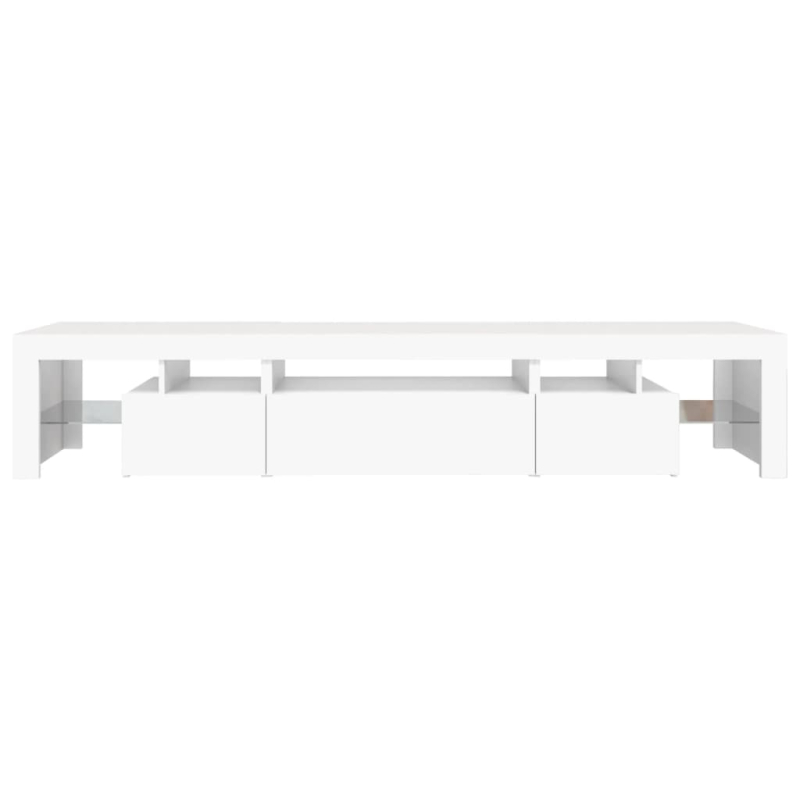 Mit seinem trendigen und zugleich praktischen Design wird dieser TV-Schrank mit LED-Leuchten definitiv zum Blickfang in Ihrem Zimmer. Starkes Material: Holzwerkstoff ist ein Material von außergewöhnlicher Qualität mit glatter Oberfläche, das sich durch Festigkeit, Stabilität und Feuchtigkeitsbeständigkeit auszeichnet. Mehrfarbige LED-Leuchten: Dieser TV-Ständer ist mit RGB-LED-Leuchten ausgestattet, die über verschiedene Menüs verfügen, um die Farbe der Leuchten zu wechseln und automatische Farbeinstellungen vorzunehmen. Die LED-Leuchten unterstreichen den modernen Look und tragen zum trendigen Gefühl bei.Reichlich Stauraum: Der TV-Schrank bietet reichlich Stauraum, um deine Zeitschriften, Bücher, Fernbedienungen und andere Kleinigkeiten gut organisiert und in Reichweite aufzubewahren.Präsentation: Die robuste Oberplatte des Medienschranks bietet den idealen Platz, um Dekoartikel, Fotorahmen oder Topfpflanzen zur Schau zu stellen. Hinweis:Das Produkt verfügt über einen USB-Anschluss, aber die zertifizierte 5-V-USB-Stromquelle ist nicht im Lieferumfang enthalten.Jedes Produkt wird mit einer Montageanleitung in der Verpackung für eine einfache Montage geliefert.
