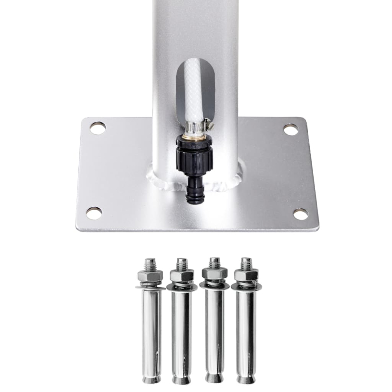 Diese Gartendusche mit modernem Design ist eine großartige Ergänzung für Ihren Pool und andere Außenbereiche. Diese Außendusche besteht aus Aluminium und ist somit witterungsbeständig. Das Duschsystem verfügt über eine Kopfdusche und eine Handbrause, um Ihren Anforderungen an Gartenarbeit, Bewässerung und schnelles Duschen gerecht zu werden. Die Handbrause verfügt über einen doppelt verriegelten flexiblen Schlauch mit einer Länge von 1,5 m. Es ist auch mit einem Handbrausehalter ausgestattet, mit dem das Handtuch auch abgelegt werden kann. Tauchen Sie ein in ein wirklich entspannendes Duscherlebnis und genießen Sie den modernen Stil dieses Außenduschsystems!