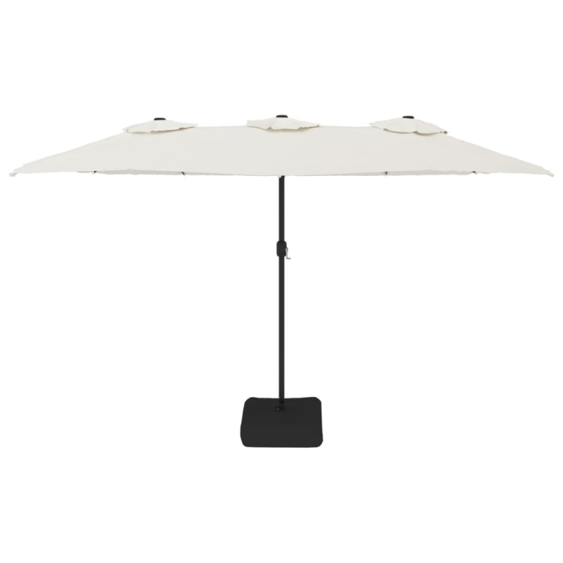 Dieser elegante Doppel-Sonnenschirm ist die perfekte Wahl, um Schatten zu spenden und dich vor den schädlichen UV-Strahlen der Sonne zu schützen. Langlebiges Material: Aus UV-beständigem und lichtechtem Polyester gefertigt, bietet der Gartenschirm optimalen Schutz vor der Sonne und lässt sich einfach reinigen.Starke Speichen: Der starke, pulverbeschichtete Eisenmast und die strapazierfähigen Speichen machen den Gartenschirm sehr stabil und belastbar.Kurbelmechanismus: Dank des Kurbelmechanismus lässt sich der Schirm leicht öffnen und schließen.Stabiler Sonnenschirmständer: Der Sonnenschirmständer mit Sand sorgt dafür, dass der Sonnenschirm auch bei starkem Wind und starkem Regen stabil und standfest ist.