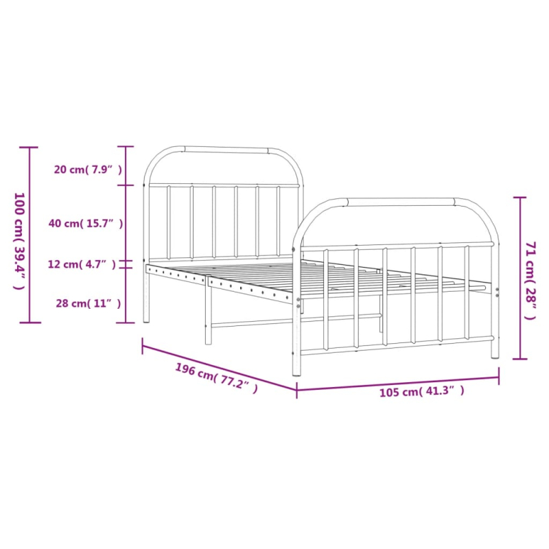 Bettgestell mit Kopf- und Fußteil Metall Schwarz 100x190 cm