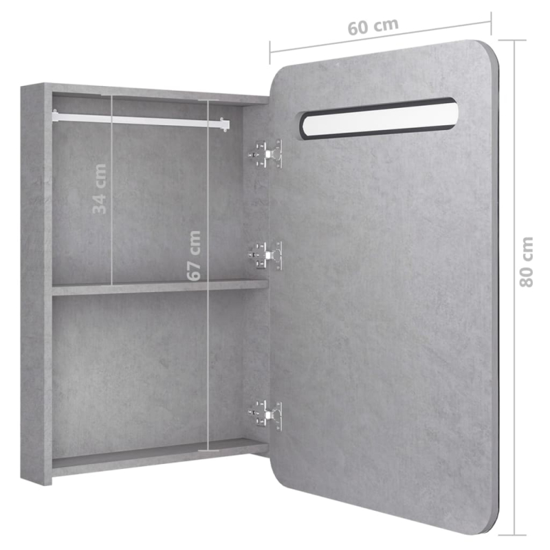 Mit unserem LED-Spiegelschrank verleiht du deinem Badezimmer eine ästhetisch ansprechende Note! Unser Wandschrank mit LED bringt einen Hauch von modernem Stil und weiches Licht in jedes Zimmer! Er besteht aus hochwertiger MDF-Platte mit Melamin-Finish, die eine langfristige Nutzung gewährleistet. Dank der integrierten LED-Beleuchtung kannst du dich selbst ins beste Licht rücken, sei es beim Schminken, Rasieren, Körperpflege und Hautpflege. Dein Zimmer, dein Gesicht und dein Lächeln werden stets beleuchtet. Zwei Einlegeböden im Inneren des Schranks bieten weiteren Stauraum im Bad für wichtige Toilettenartikel und Badeartikel wie Seifen, Shampoo, Zahnpasta usw. Dieser stilvolle und funktionale Spiegelschrank mit Beleuchtung wird dein Bad mit Sicherheit außergewöhnlich machen! Hinweis:Das Produkt verfügt über einen USB-Anschluss, aber die zertifizierte 5-V-USB-Stromquelle ist nicht im Lieferumfang enthalten.