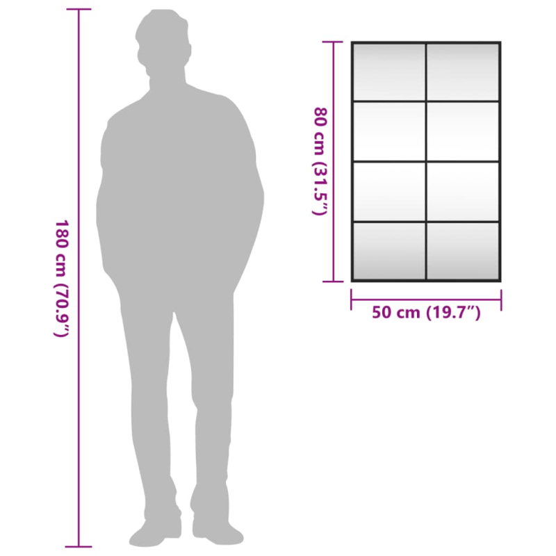 Mit diesem praktischen Wandspiegel verleihst du deiner Inneneinrichtung einen Hauch von minimalistischer Ästhetik! Wandmontage: Der Spiegel lässt sich je nach Belieben vertikal oder horizontal an der Wand befestigen, wodurch er sich sehr gut für kleinere Räume eignet. Langlebiges Material: Der Wandspiegel besteht aus Glas und einem pulverbeschichteten Rahmen, was ihn stabil und langlebig macht. Klares Spiegelbild: Der Glasspiegel bietet eine klare Spiegelung. So kannst du ein schönes und natürliches Spiegelbild genießen. Breite Anwendungen: Du kannst den Hängespiegel zum Dekorieren deines Schlafzimmers, Flurs, Wohnzimmers, Badezimmers und jedes anderen Raums verwenden, dem du eine luxuriöse Note verleihen möchtest.