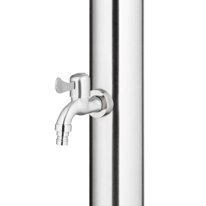 Diese Gartendusche mit modernem Design ist eine großartige Ergänzung für Ihren Pool und andere Außenbereiche. Die Außendusche besteht aus Edelstahl und ist somit witterungsbeständig. Das Duschsystem verfügt über eine Kopfdusche und einen Fußwaschhahn, um Ihre Anforderungen an Gartenarbeit, Bewässerung und schnelles Duschen zu erfüllen. Die haltbare und korrosionsbeständige Bodenplatte besteht aus hochwertigem WPC und ist mit gebürstetem Edelstahl umrahmt, was eine jahrelange Haltbarkeit gewährleistet. Es bietet außerdem ein Höchstmaß an Hygieneschutz und ist somit ideal für Ihren Außenbereich. Dank seiner Robustheit und Vielseitigkeit kann die Duschwanne auch als Unterlage für eine Poolleiter dienen. Tauchen Sie ein in ein wirklich entspannendes Duscherlebnis und genießen Sie den modernen Stil dieses Außenduschsystems!