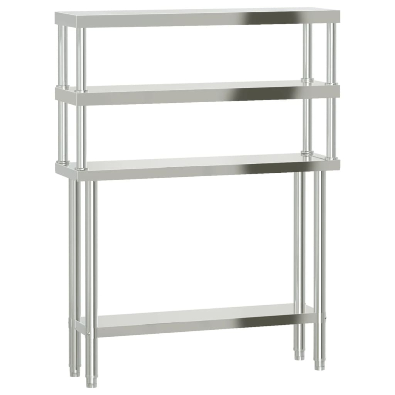 Dieser Küchentisch eignet sich perfekt für die Zubereitung und Lagerung von Lebensmitteln und lässt sich in Küchen, Bars, Restaurants, Schulen sowie anderen gewerblichen Einrichtungen einsetzen. Langlebige und stabile Konstruktion: Der Arbeitstisch ist aus Edelstahl gefertigt, der korrosions- sowie rostbeständig ist, und ist dadurch auf eine jahrelange Lebensdauer ausgelegt. Die glatte Oberfläche lässt sich leicht reinigen und pflegen und gewährleistet einen hygienischen Bereich für die Lebensmittelzubereitung.Großzügiger Arbeitsplatz: Der Vorbereitungstisch aus Edelstahl verfügt über eine untere Ablage und ein Überregal mit 2 Böden, die zusätzlichen Stauraum schaffen und reichlich Platz für eine Mikrowelle, Küchenutensilien oder andere Geräte bieten.Verstellbare Füße: Die verstellbaren, rutschfesten Füße gewährleisten die Stabilität des Küchentisches und verhindern auch die Beschädigung des Fußbodens. Achtung:Um ein Umkippen zu vermeiden, sollte dieses Produkt mit der mitgelieferten Wandhalterung gesichert werden.