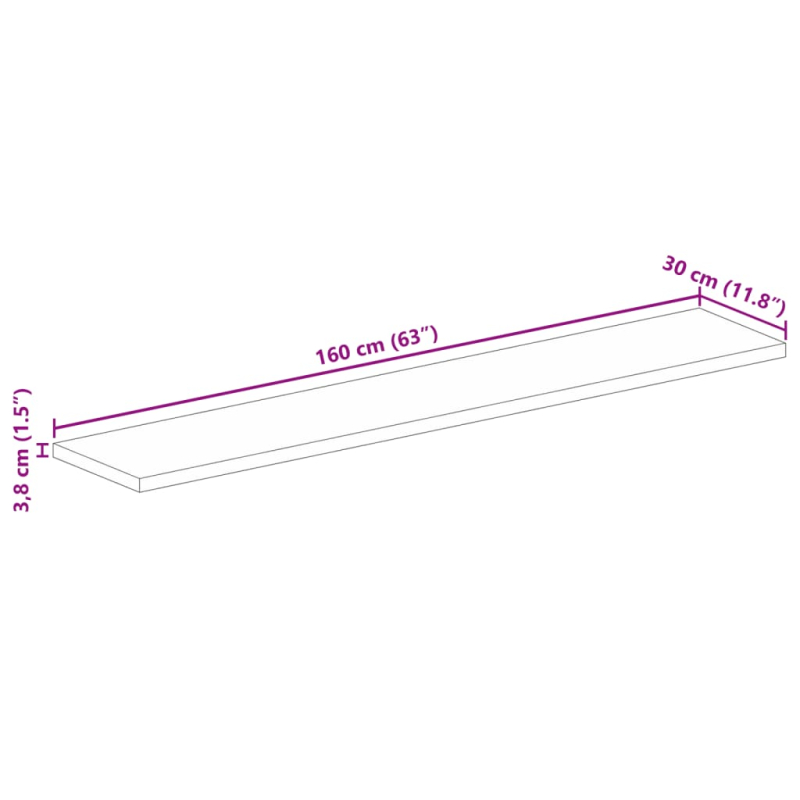 Tischplatte 160x30x3,8 cm Rechteckig Massivholz Mango