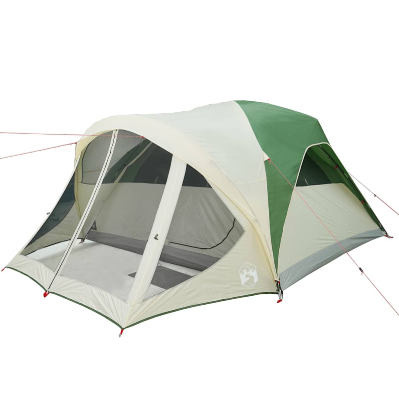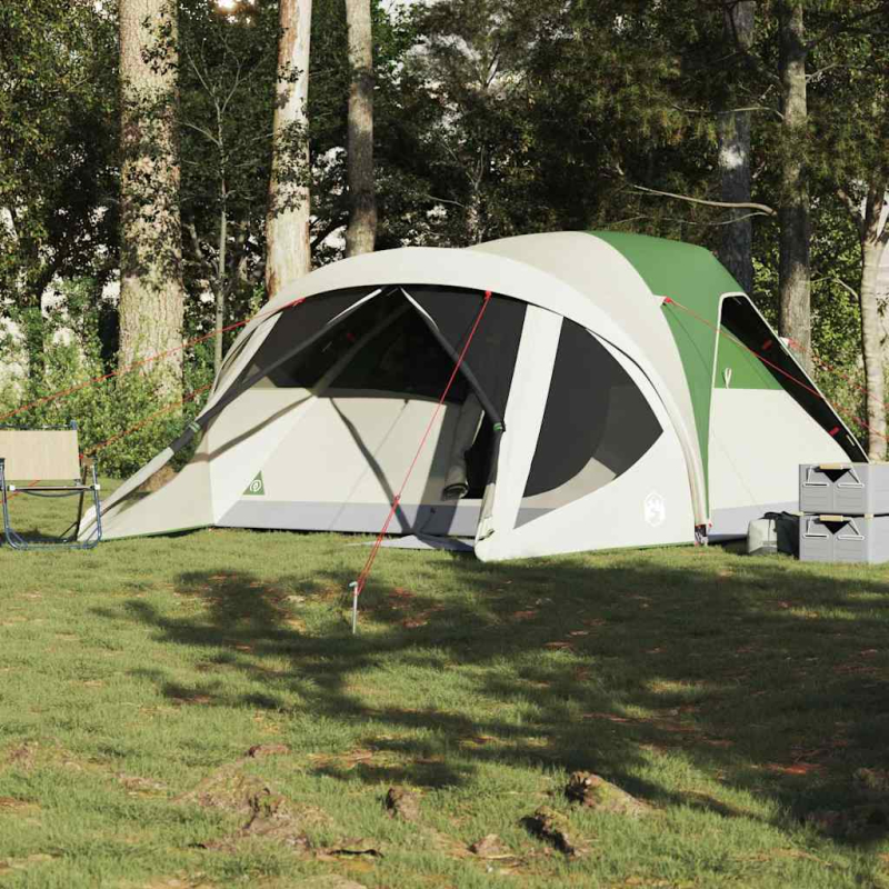 Dieses moderne Familienzelt schützt vor unangenehmen Wetter und bietet einen komfortablen Platz bei Abenteuern. Rundum wasserdichtes Design: Aus Polyester mit PU-Beschichtung gefertigt, ist dieses Campingzelt wasser- und winddicht. Die versiegelten Nähte verhindern effektiv das Eindringen von Regenwasser, während die strapazierfähige Bodenplane für ein trockenes und komfortables Interieur sorgt. Einfacher Auf- und Abbau: Die hochflexiblen und leichten Glasfaserstangen und das praktische Steckverbindungssystem machen den Auf- und Abbau des Zeltes zum Kinderspiel. Abnehmbares Überzelt: Das abnehmbare Überzelt lässt sich an der Zeltoberseite befestigen, um Wetterschutz zu bieten und Privatsphäre zu schaffen. Praktischer Zugang zum Stromkabel: Dank des E-Anschlusses kannst du ganz einfach ein Verlängerungskabel von einer externen Stromquelle an dein Zelt anschließen. Leicht und tragbar: Dank des faltbaren und leichten Designs lässt sich das Zelt einfach verpacken und in der mitgelieferten Tragetasche mühelos verstauen und transportieren. Achtung:Halte alle Flammen und Wärmequellen von diesem Zeltstoff fern.