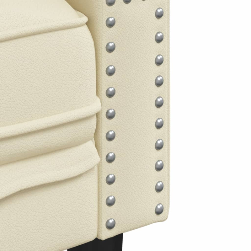 Diese Chesterfield-Sofas bietet den idealen Platz zum Plaudern, Lesen, Fernsehen oder einfach nur zum Entspannen. Die Sofagarnitur wird ein echter Blickfang in deinem Zuhause sein. Langlebig und pflegeleicht: Kunstleder ist ein äußerst langlebiges und schmutzabweisendes Material, das sich mit einem feuchten Tuch leicht reinigen lässt. Durch die glatte Oberfläche weist es die Eleganz von Echtleder auf.Bequemes Sitzerlebnis: Dank der dick gepolsterten Sitzflächen, der Armlehnen und der Rückenkissen ist das Sofa sehr bequem.Chesterfield-Stil: Mit dem klassischen Rückenlehne und den Armlehnen mit Knopftuft und einer einheitlichen Rücken- und Armhöhe wertet das Sofa jeden Wohnraum auf und bietet sowohl Stil als auch Komfort.Stützbeine: Der Polstersessel wird von stabilen Beinen getragen, die seine Stabilität und Standfestigkeit gewährleisten.