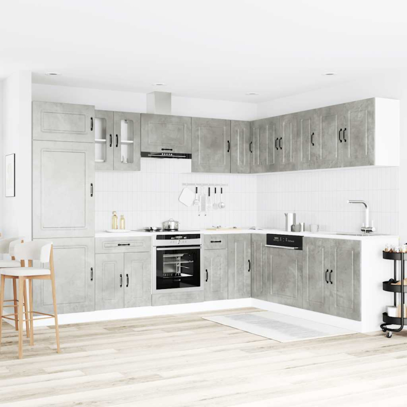 Mit ihrem eleganten Design optimiert diese 14-teilige Küchenzeile Ihre Küche und bietet reichlich Platz für Ihre Küchenausstattung! Starkes und langlebiges Material: Holzwerkstoff ist ein langlebiges und robustes Material mit einer glatten Oberfläche, das gegen Feuchtigkeit, Verformung und Rissbildung beständig ist, wodurch es eine zuverlässigen Wahl für die Herstellung von Möbeln ist.Viel Stauraum: Das Küchenschrank-Set hat viele Fächer und bietet ausreichend Platz für Schüsseln, Teller, Töpfe und andere Küchengeräte.Verstellbare Füße: Die Unterschränke sind mit verstellbaren Füßen ausgestattet, die sich in der Höhe an deine Kücheneinrichtung anpassen lassen.Pflegeleicht: Dank der glatten Oberfläche lassen sich diese Küchenschränke leicht mit einem feuchten Tuch reinigen und benötigen weniger Pflege. Achtung:Um ein Umkippen zu vermeiden, sollte dieses Produkt mit der mitgelieferten Wandhalterung gesichert werden. Gut zu wissen:Schrauben und Dübel für die Wandbefestigung sind nicht enthalten. Suchen und verwenden Sie die für Ihre Wände geeigneten Schrauben und Dübel. Wenn Sie unsicher sind, suchen Sie professionelle Hilfe. Lesen und befolgen Sie jeden Schritt der Anleitung sorgfältig.Die Arbeitsplatte, das Spülbecken und der Wasserhahn sind nicht im Lieferumfang enthalten.