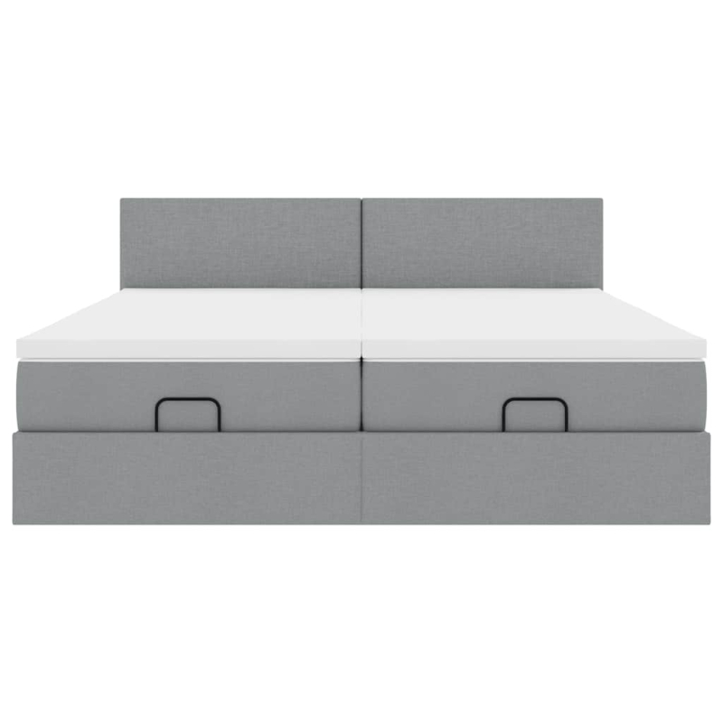 Genieße mit diesem Ottomanbett mit Matratze eine erholsame Nachtruhe! Es bietet dir sowohl eine Stauraumlösung als auch ein komfortables Schlaferlebnis. Weiches und strapazierfähiges Material: Polyestergewebe fühlt sich weich an, ist atmungsaktiv sowie strapazierfähig und sorgt so für höchsten Komfort und Behaglichkeit.Taschenfederkernmatratze: Diese Matratze hat einzelne Taschenfedern, die unabhängig voneinander arbeiten. Somit bietet sie dir optimalen Halt, indem sie auf Druckstellen in jedem Bereich unabhängig reagieren. Diese Konstruktion verhindert das "Zusammenrollen" und reduziert die Bewegungsübertragung im Vergleich zu alten Federkernmatratzen. Jede Taschenfeder stützt die Körper-Druckstellen individuell.Großer Stauraum unter dem Bett: Dank des hydraulischen Hebemechanismus bietet der Bettrahmen reichlich Stauraum unter dem Bett, sodass der Platz maximiert wird, ohne zusätzliche Bodenfläche zu beanspruchen. Mit einem einfachen Zug am Griff hebt sich der Lattenrost sanft an, sodass du deine Gegenstände schnell und mühelos herausholen kannst.Komfortable Matratzenauflage: Die Auflage verbessert den Halt und den Komfort mit ihrer weichen, atmungsaktiven Oberfläche und verlängert gleichzeitig die Lebensdauer deiner Matratze. Der abnehmbare Bezug ermöglicht ein einfaches Waschen, was die Pflege der Matratze zum Kinderspiel macht. Gut zu wissen:Dieses Doppelbett besteht aus zwei Einzelbetten, sodass jeder Lattenrost unabhängig voneinander angehoben werden kann.Aus hygienischen Gründen kann die Matratze nicht zurückgegeben werden, wenn die Verpackung entfernt oder geöffnet wurde.
